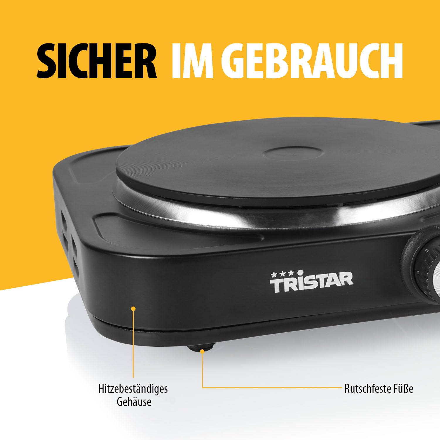 Tristar Portable Cooktop - Double Burner - For student housing, camping, American cuisine - 15.5 and 18.5 cm diameter - Adjustable thermostat - 2500 W - KP-6152
