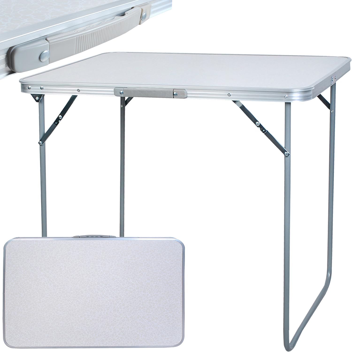 TRIZAND folding table for balcony kitchen market camping small collapsible loadable 20 kg multifunction table 80 x 60 cm white 23500