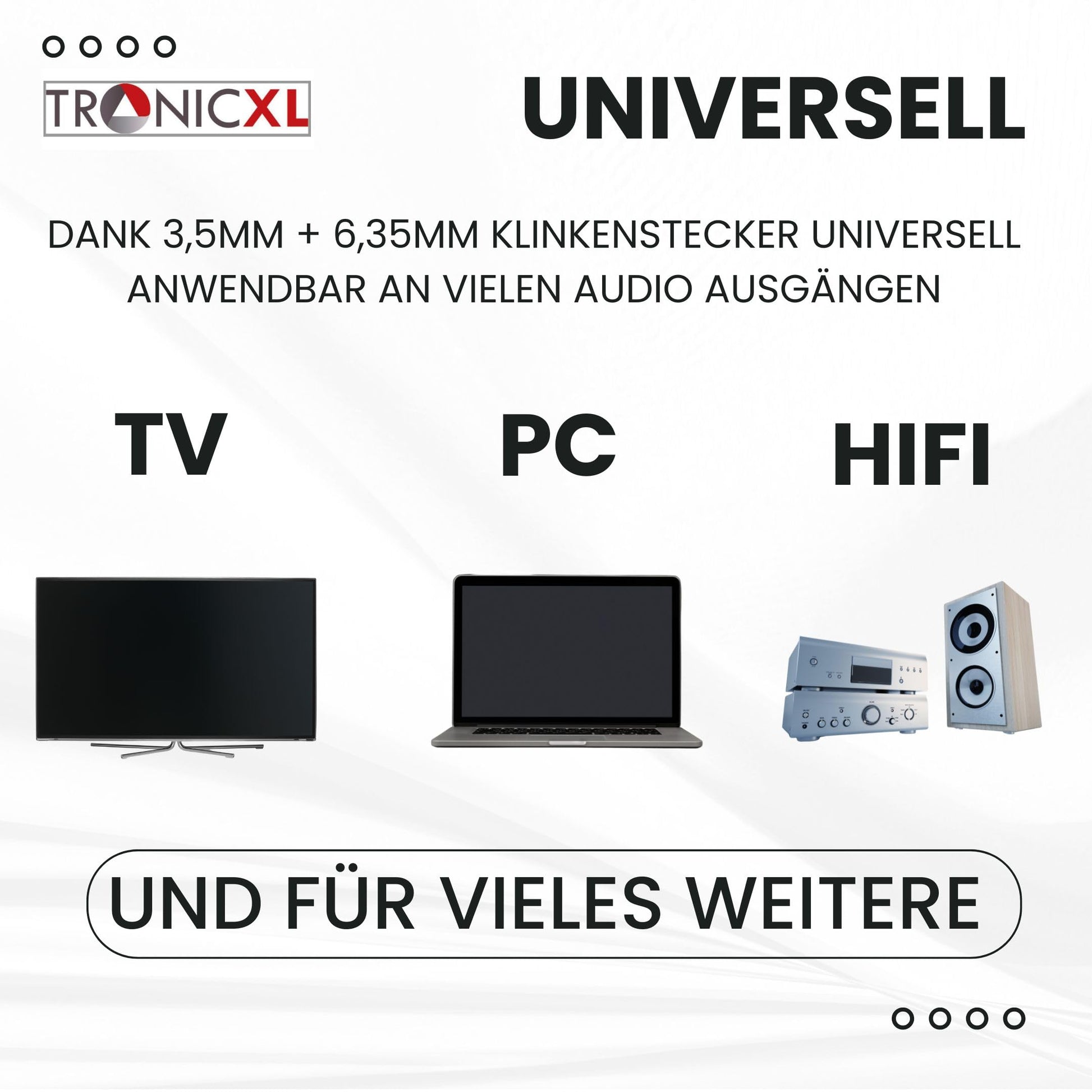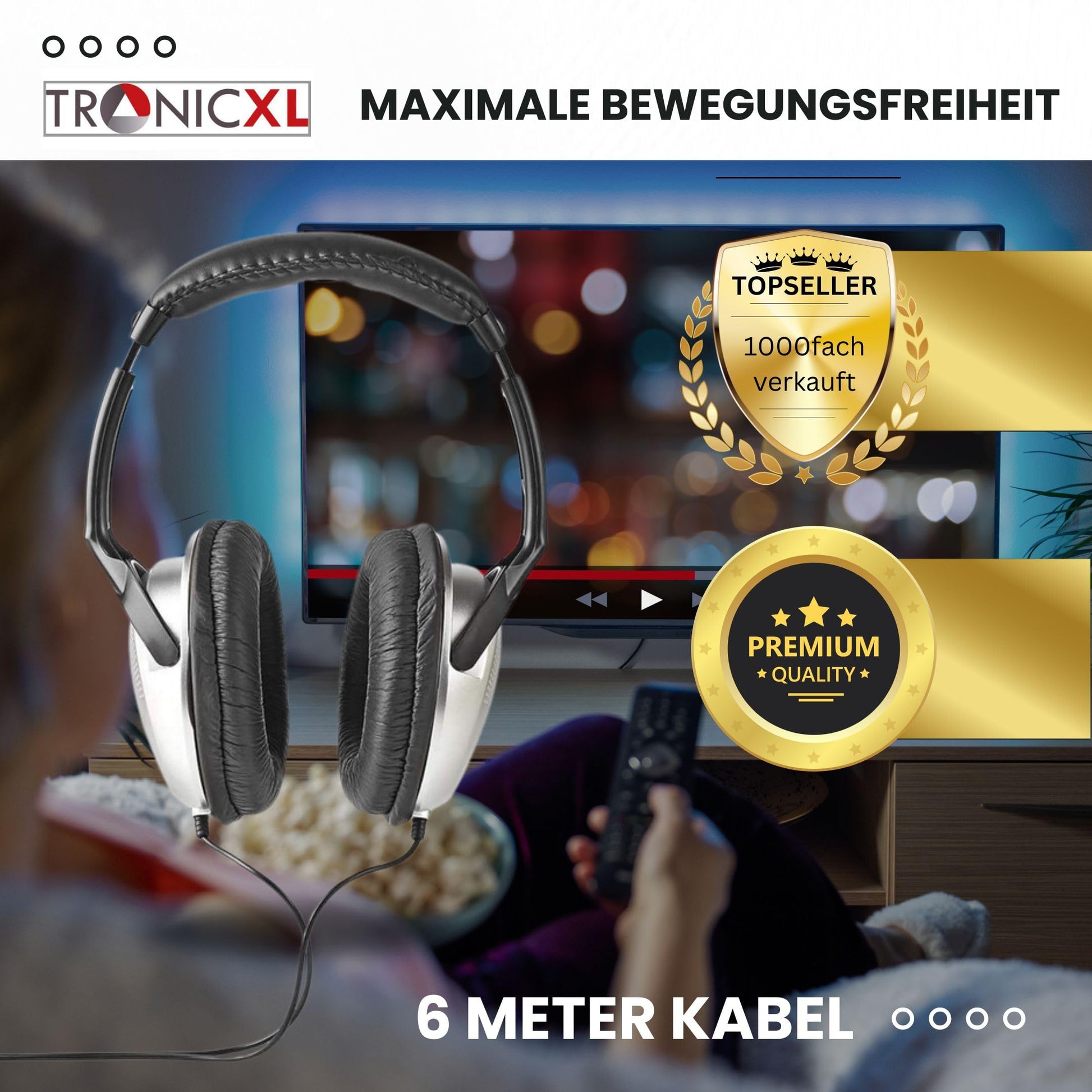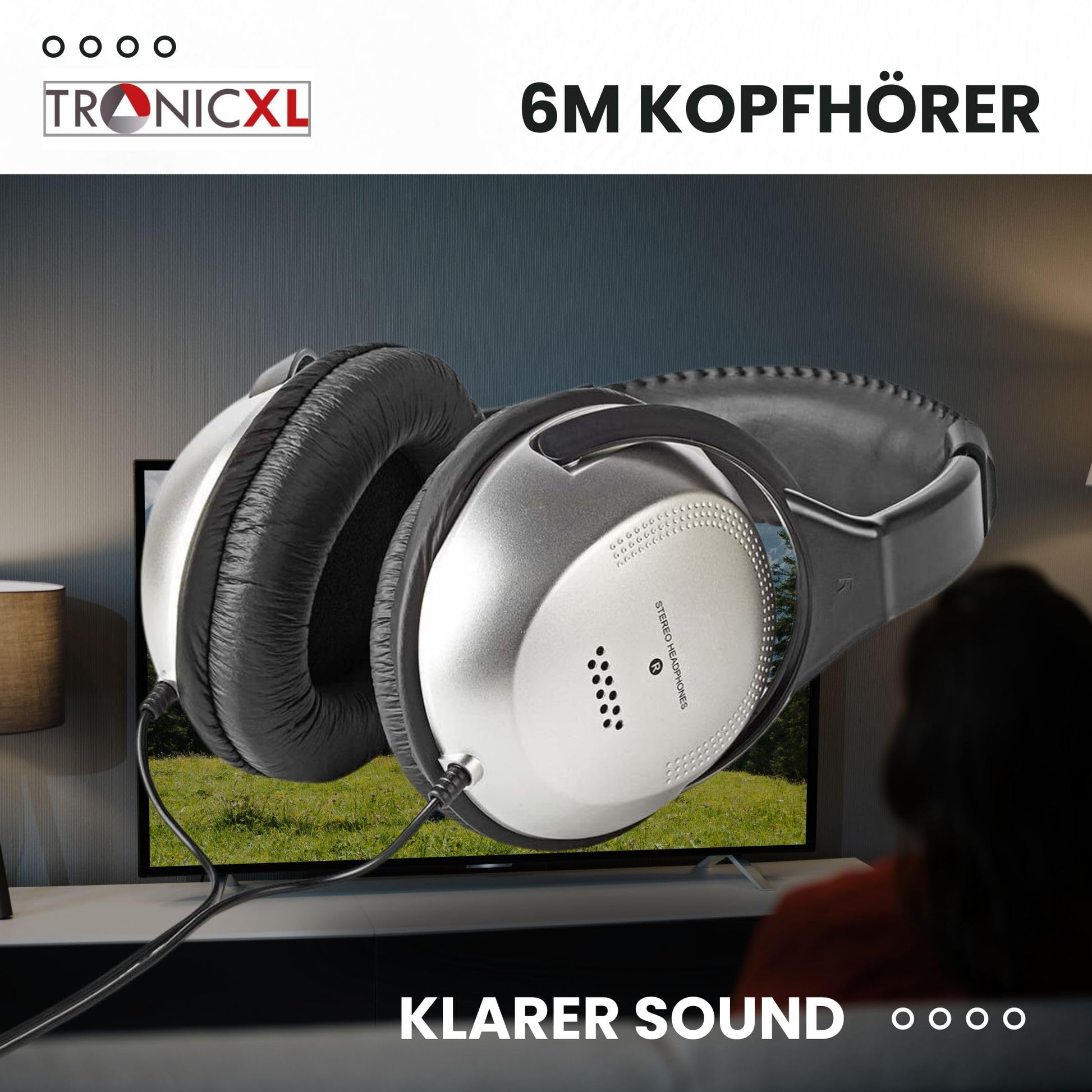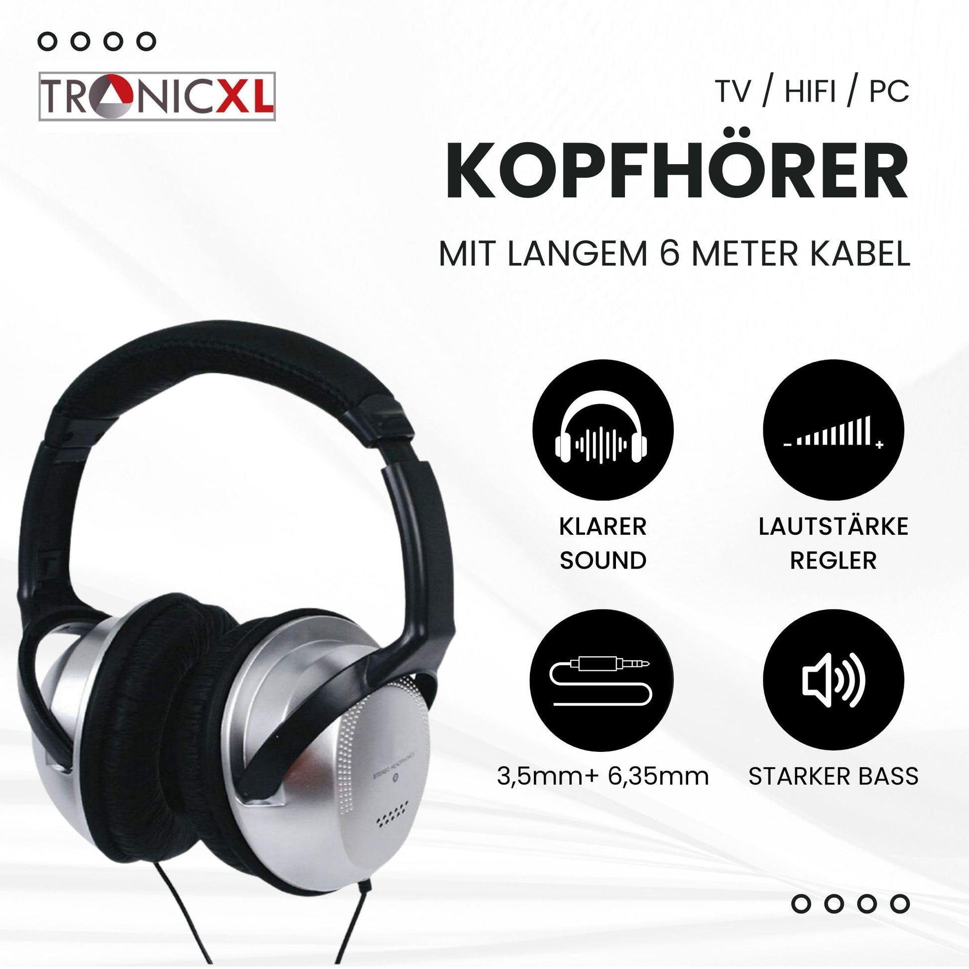TronicXL TV headphones headband headphones with 6m long cable. Stereo TV headphones for TV, PC, HiFi with 3.5mm jack and 6.35mm plug. Wired, long cable.