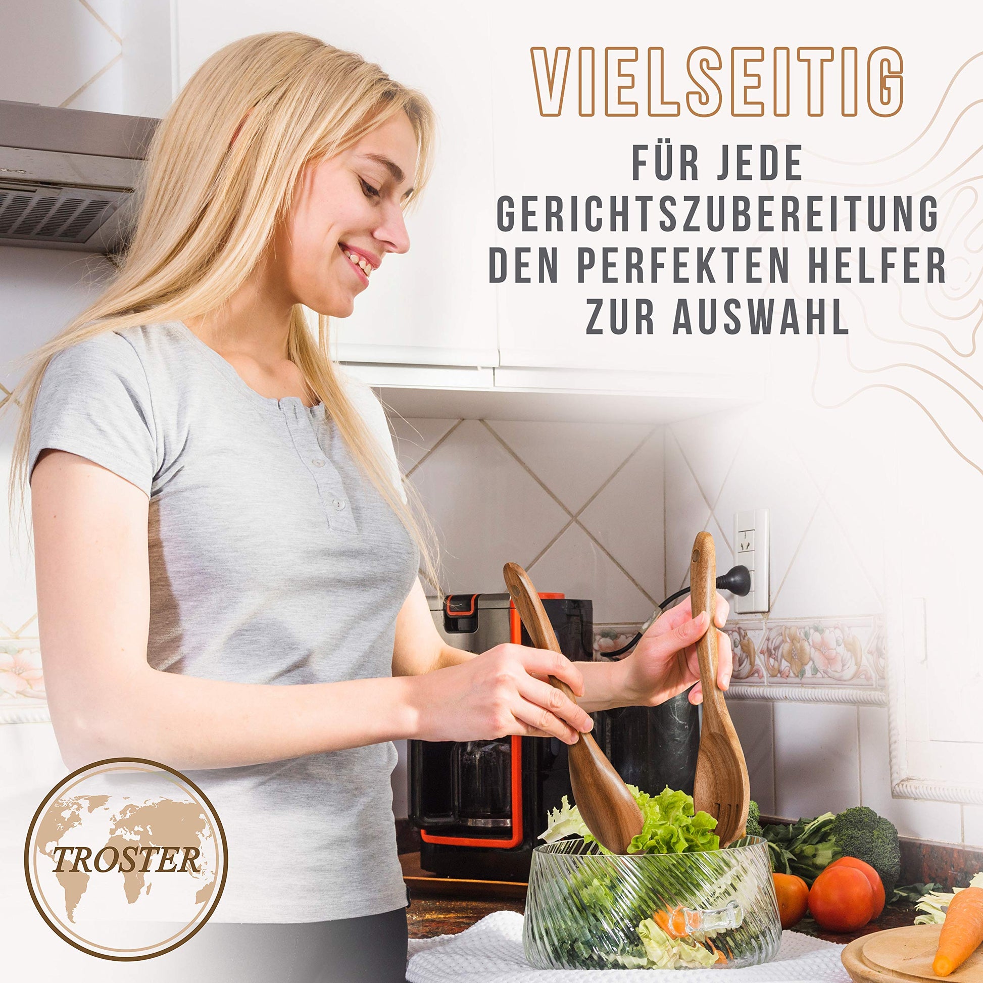 TROSTER® Kitchen Utensil Set Wood - 100% FSC - Wooden spatula, wooden spoon, wooden soup ladle, wooden skimmer - Wooden kitchen helper set - Wooden cooking utensil set - Wooden cooking utensils set
