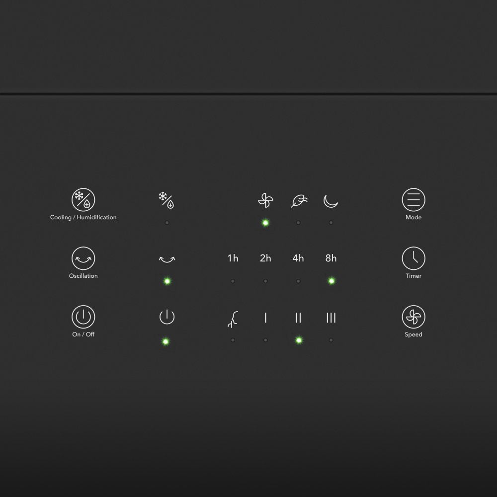 The large 20-liter water tank ensures long cooling and humidification times. Add ice cubes or cooling packs to further enhance the cooling performance. The convenient water level indicator quickly and easily shows you how much water is still in the air cooler and also has a MIN/MAX display.