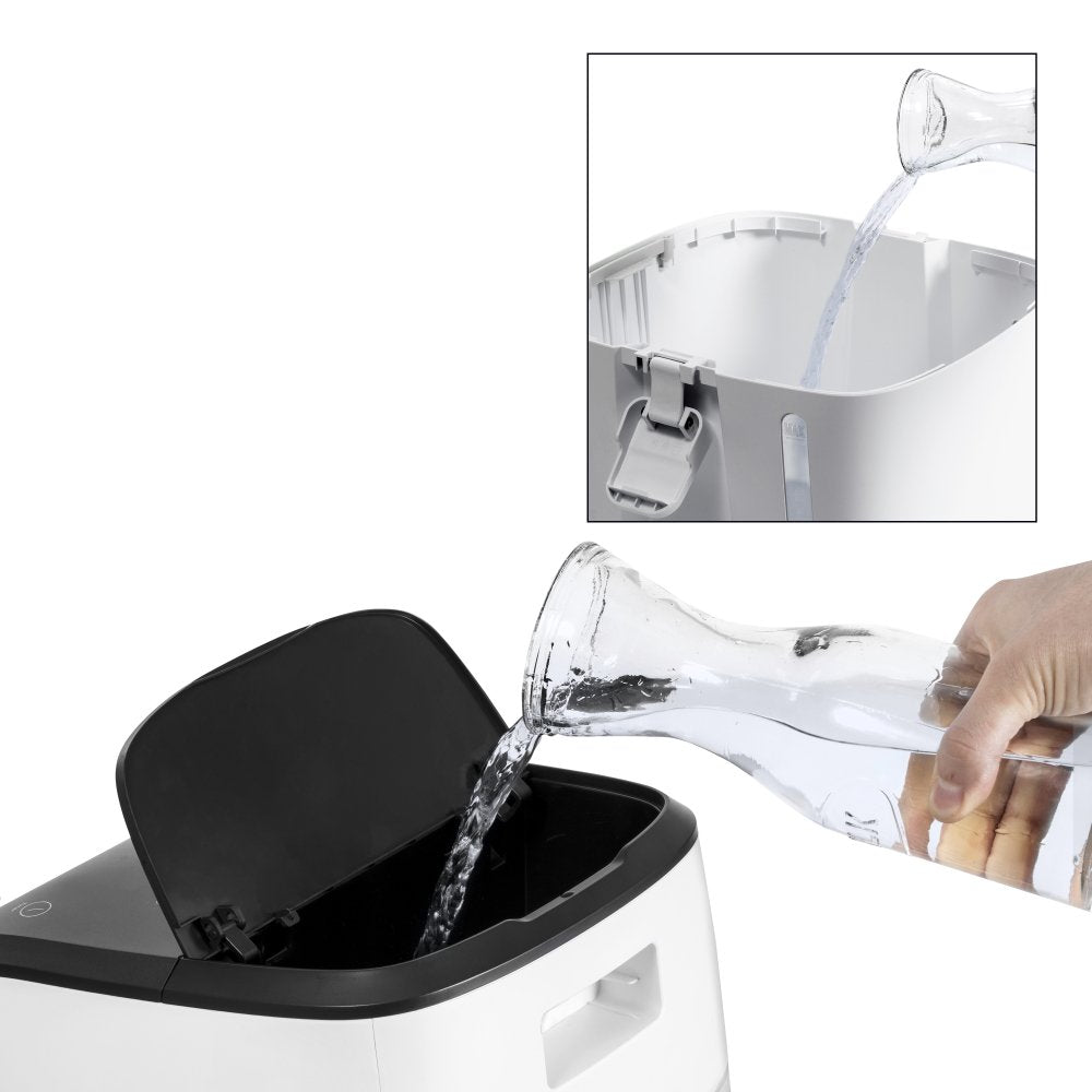 For this cooling, the unit requires fresh tap water, which is filled into the 20-liter water tank. The integrated evaporative filter with honeycomb structure humidifies the sucked-in air and blows it out as cold air over the fan. This cool airflow provides a refreshing and immediately noticeable cooling effect.