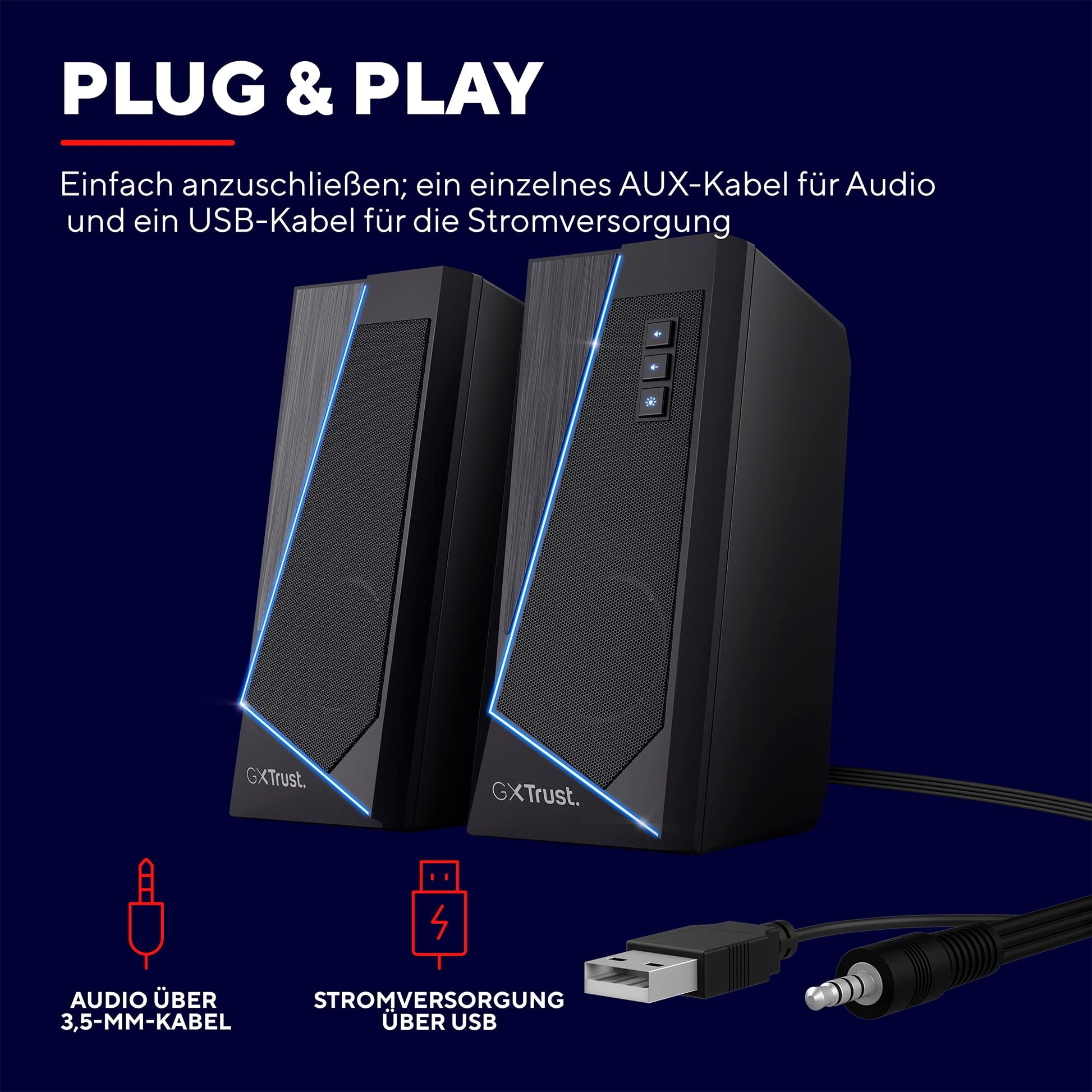 "AMAZING SOUND - Full stereo sound (12 W peak power) gives your setup a huge audio boost - whether you're gaming, watching movies, or listening to your favorite music