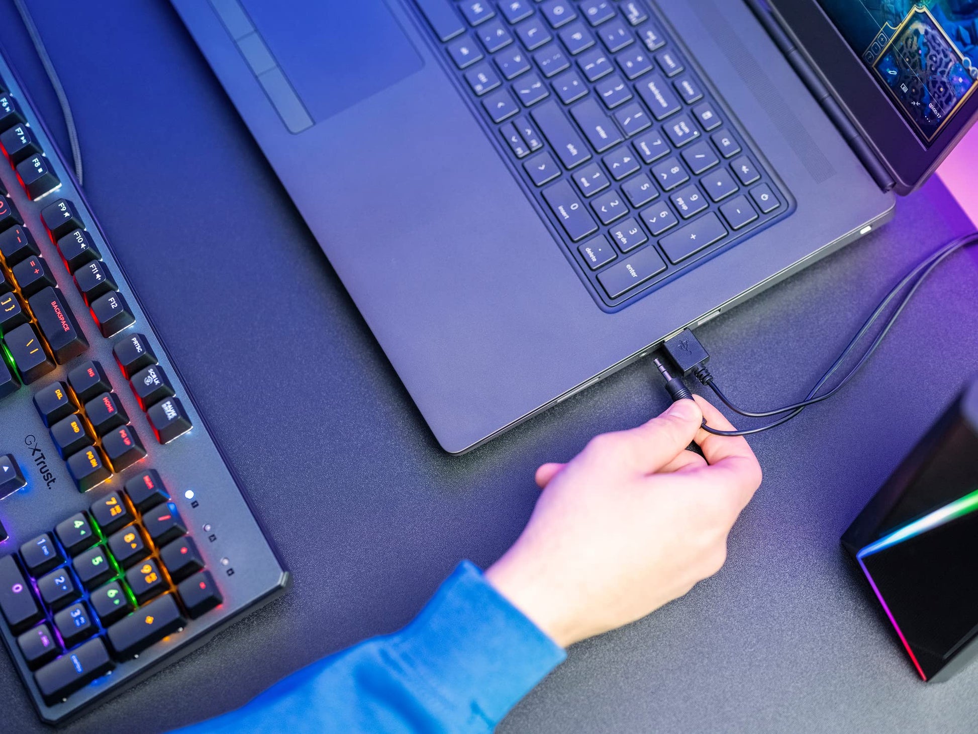 "SOUND THE LOOK - RGB lighting with 6 color modes provides a vibrant audiovisual experience for any media setup"