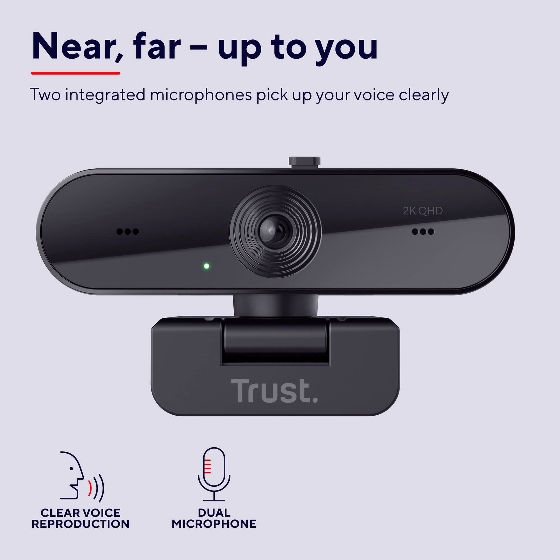 Trust Taxon 2K QHD Webcam made of 85% recycled plastic, 2560x1440p USB camera for PC with cover, autofocus, wide angle, 2 microphones, video camera for conferences, video calls, Skype, Teams, Zoom