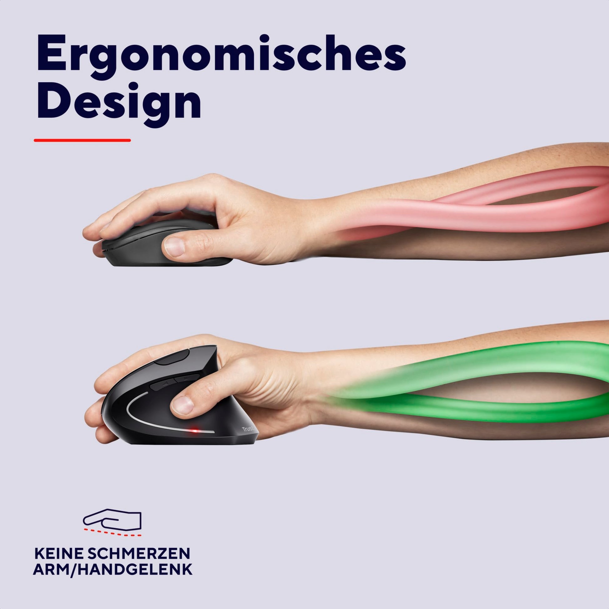Trust Verto Wireless Vertical Mouse, Wireless Ergonomic Mouse, Prevention of Mouse Arm/Tennis Elbow (RSI Syndrome), 800-1600 DPI, Wireless Mouse for Right-Handed, PC, Computer, Laptop, Mac, with Batteries.