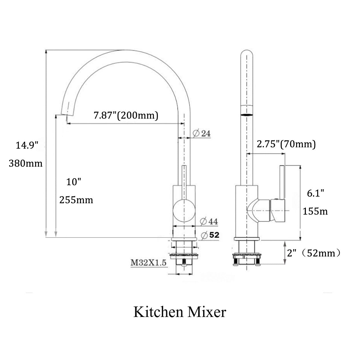 ["Quality Material: Durable solid brass construction sink hot and cold mixing faucet. Drip-free ceramic disc cartridge for smooth and long-lasting operation.","Full Rotation Design: High-arc spout swivels 360 degrees for complete sink access, spout reaches 200 mm, spout height 250 mm, tap at highest reaches 380 mm.","Hot and cold water supplied: Single hole installation, one-handle operation, hot and cold mixing, using ceramic cartridge, 60cm water supply line. All connections are standard 1/2\" thread.","Brushed Gold (brushed brass) coated for a super look","Minimum 0.1 MPa water pressure, 0.6 MPa recommended for best performance."]