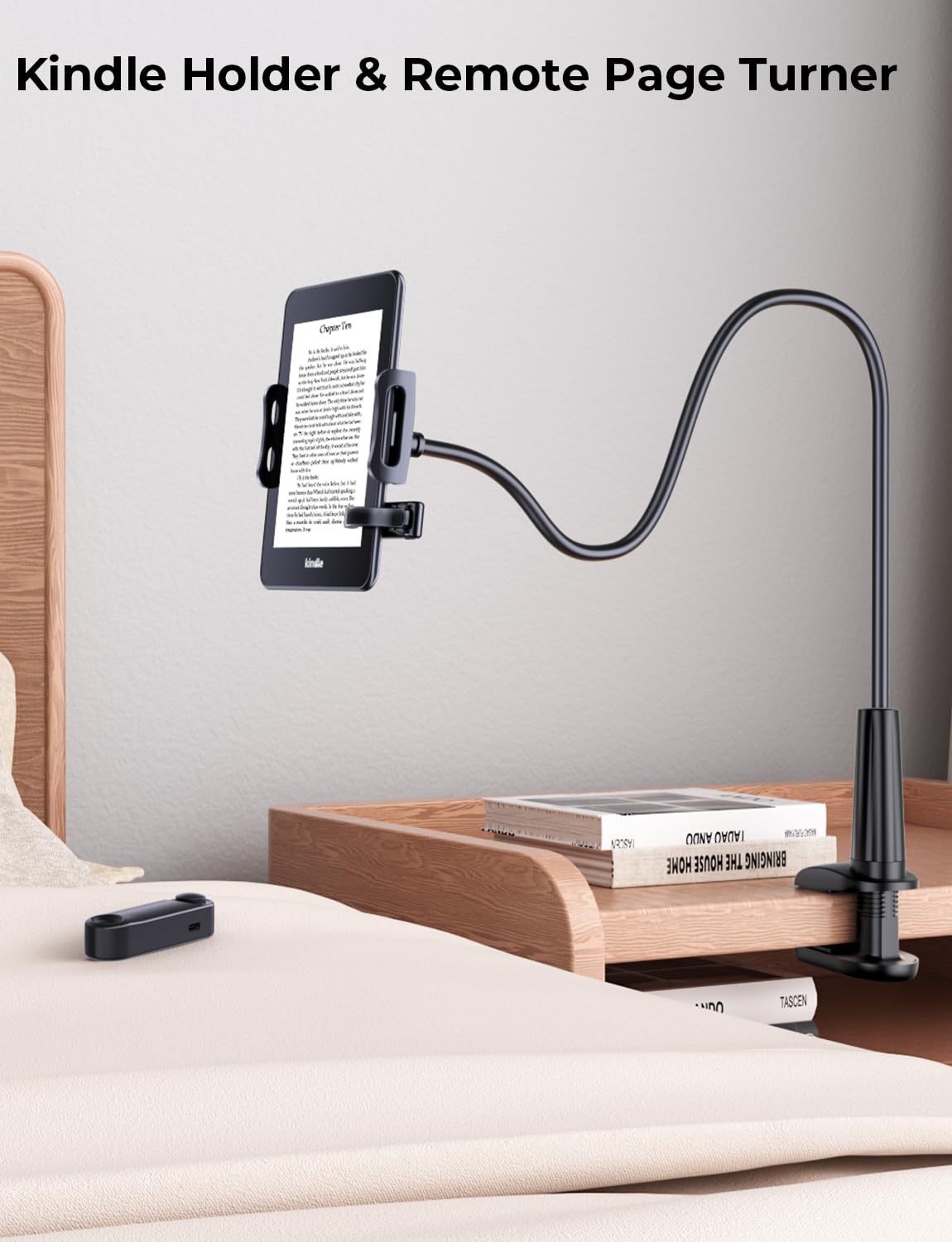 ["Kindle stand with remote page turning]: An essential Kindle accessory for reading in bed, allowing you to turn pages without touching the screen. This remote page turner does not require Bluetooth or WIFI - perfect for hands-free reading in bed while keeping your hands warm under the covers.