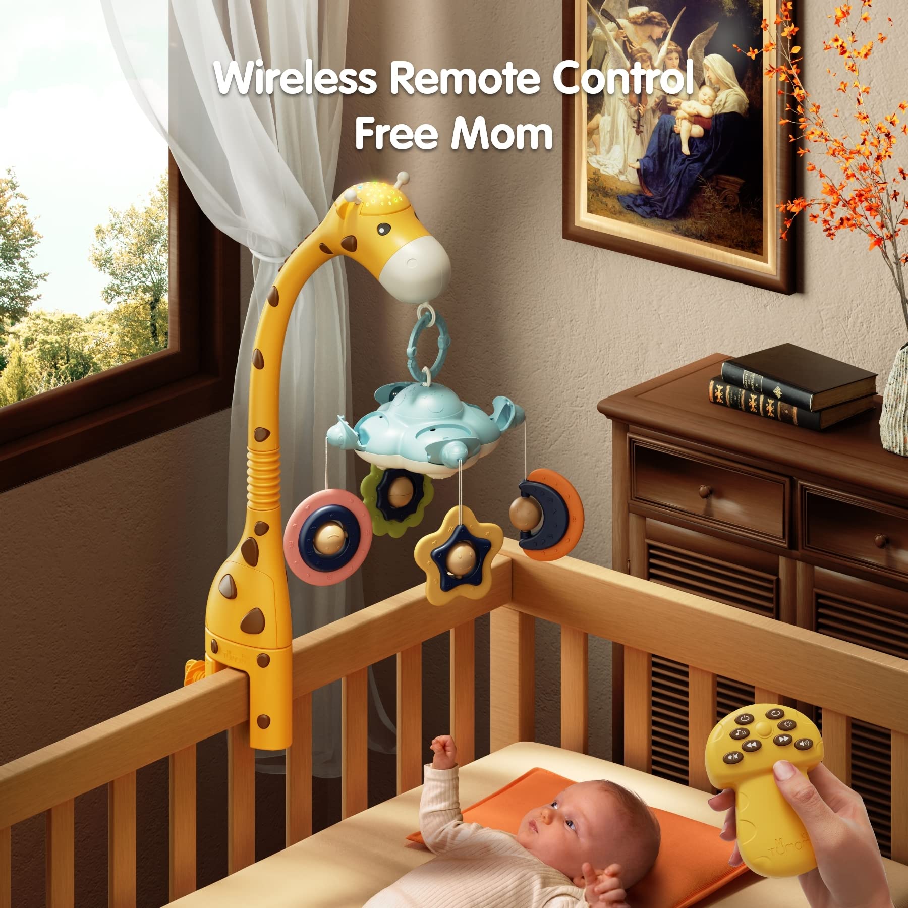 TUMAMA Mobile Baby Crib, 3 in 1 Baby Mobiles for Crib with Remote Control, Projection Night Light, Music Box, Crib Accessories Sensory Toys For Boys Girls Kids Gift