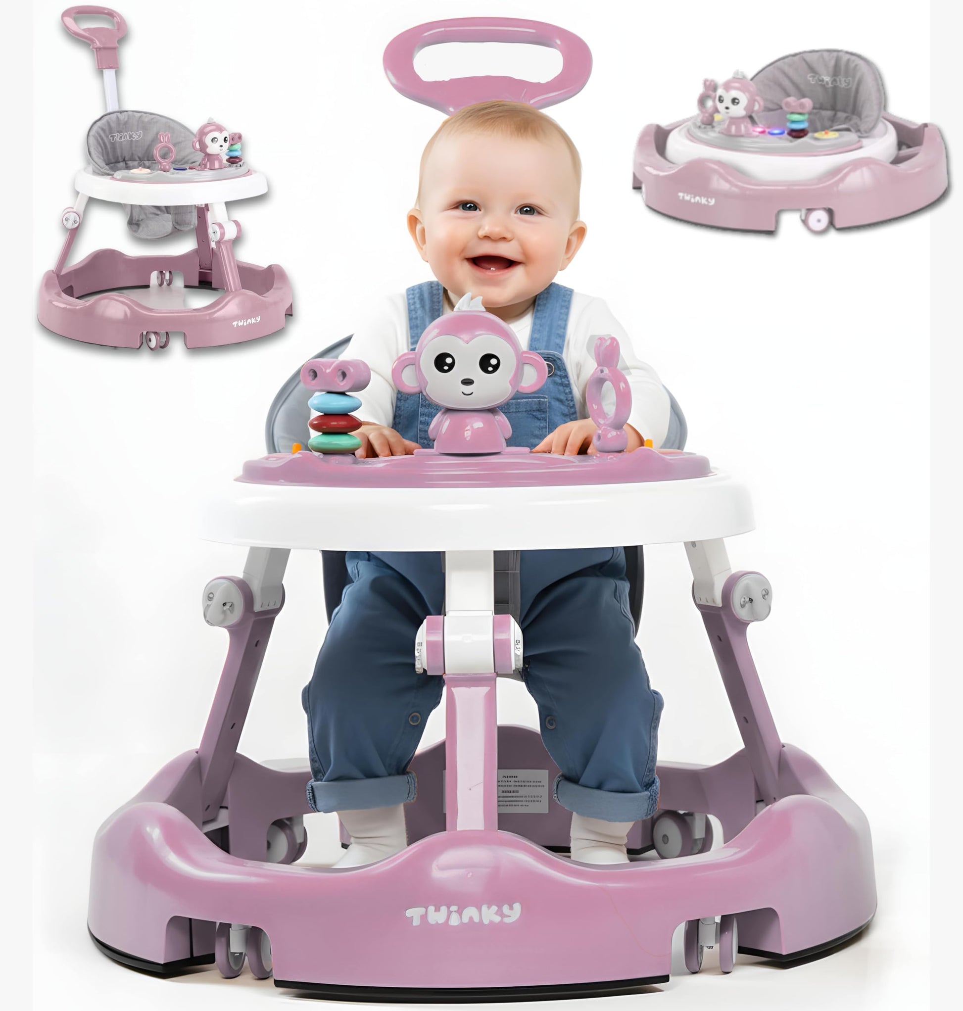 Twinky® Baby Walker with Playset & Floor Mat - Sturdy 4-way adjustable preschool walking aid - Perfect as a support for your little one's first steps (Pink)