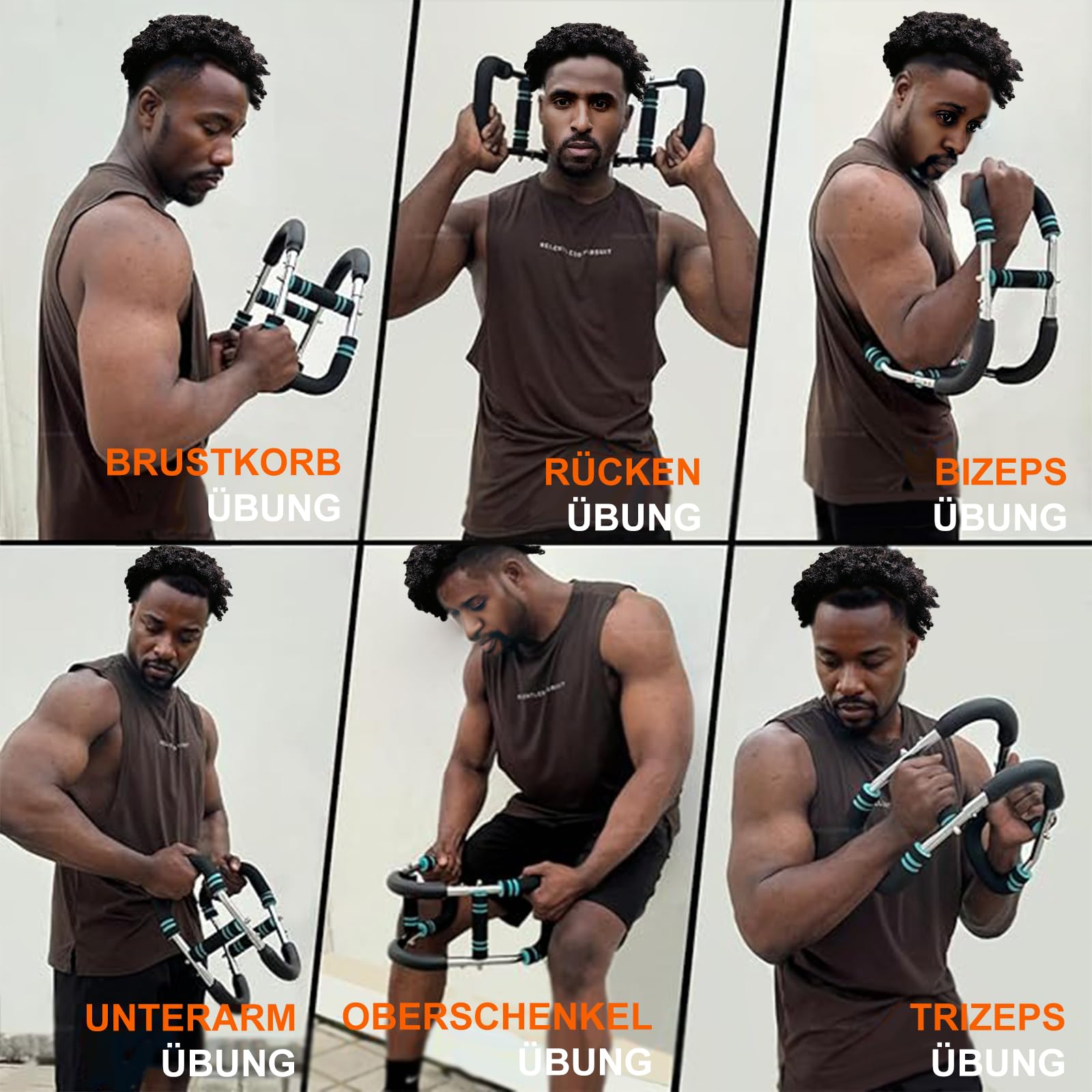 ["UNIQUE FULL BODY TRAINING DEVICE"] The U-Shape Twisted Arm Trainer targets forearm, biceps, triceps, chest, shoulders, back, and legs for a full-body workout. It helps build muscle and endurance with noticeable results over time. Recommendations: 15-20 repetitions, 4-5 sets of each exercise. ["VERSATILE STRENGTH TRAINING DEVICE"] Unlike traditional arm trainers, this muscle training bar activates more muscle groups – including chest, wrists, arms, back, legs, and shoulders. Simply follow the standard instructions for a stronger body! 5 resistance levels are available: 30KG/35KG/40KG/45KG/50KG to meet various training requirements. ["DURABLE, COMFORTABLE & STURDY DESIGN"] The arm trainer is made of high-strength metal springs that are flexible, durable, and stable. Smooth movement without delay. Leather-wrapped metal outer layer to prevent sports injuries. The handle is made of thickened non-slip foam, non-slip and comfortable. ["EFFICIENT AND PORTABLE"] Whether you are a beginner or a professional athlete, this arm training device helps you strength train in a simple and practical way. It is detachable and takes up no space, allowing you to use it to train your muscles whether you are outdoors, traveling, at the office, or at home. It is a great addition to your gym. ["QUALITY PROMISE"] We stand behind the quality of our products! If you have any questions or are not satisfied with the arm trainer, please contact us, we will provide you with the best solution. Your satisfaction is our top priority.