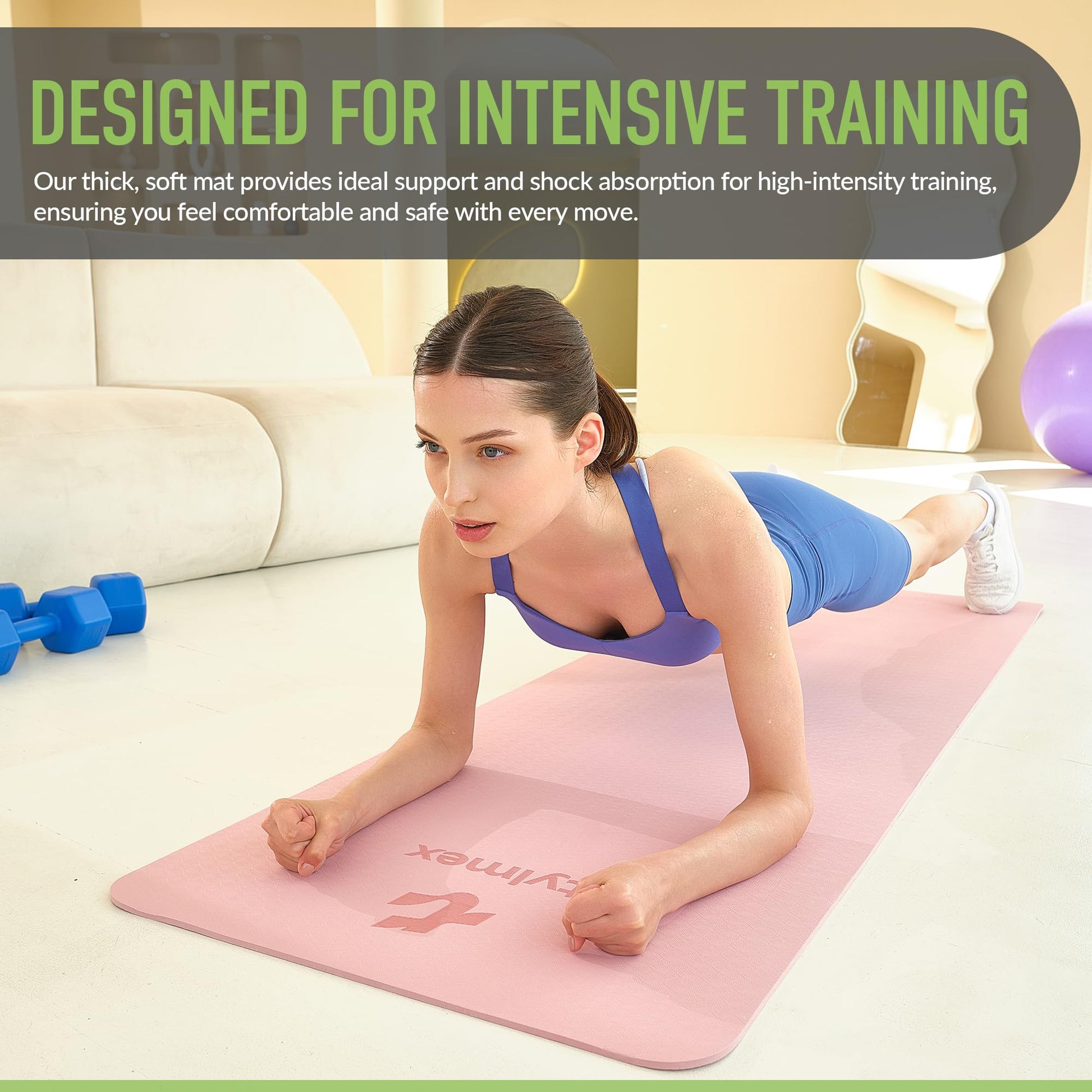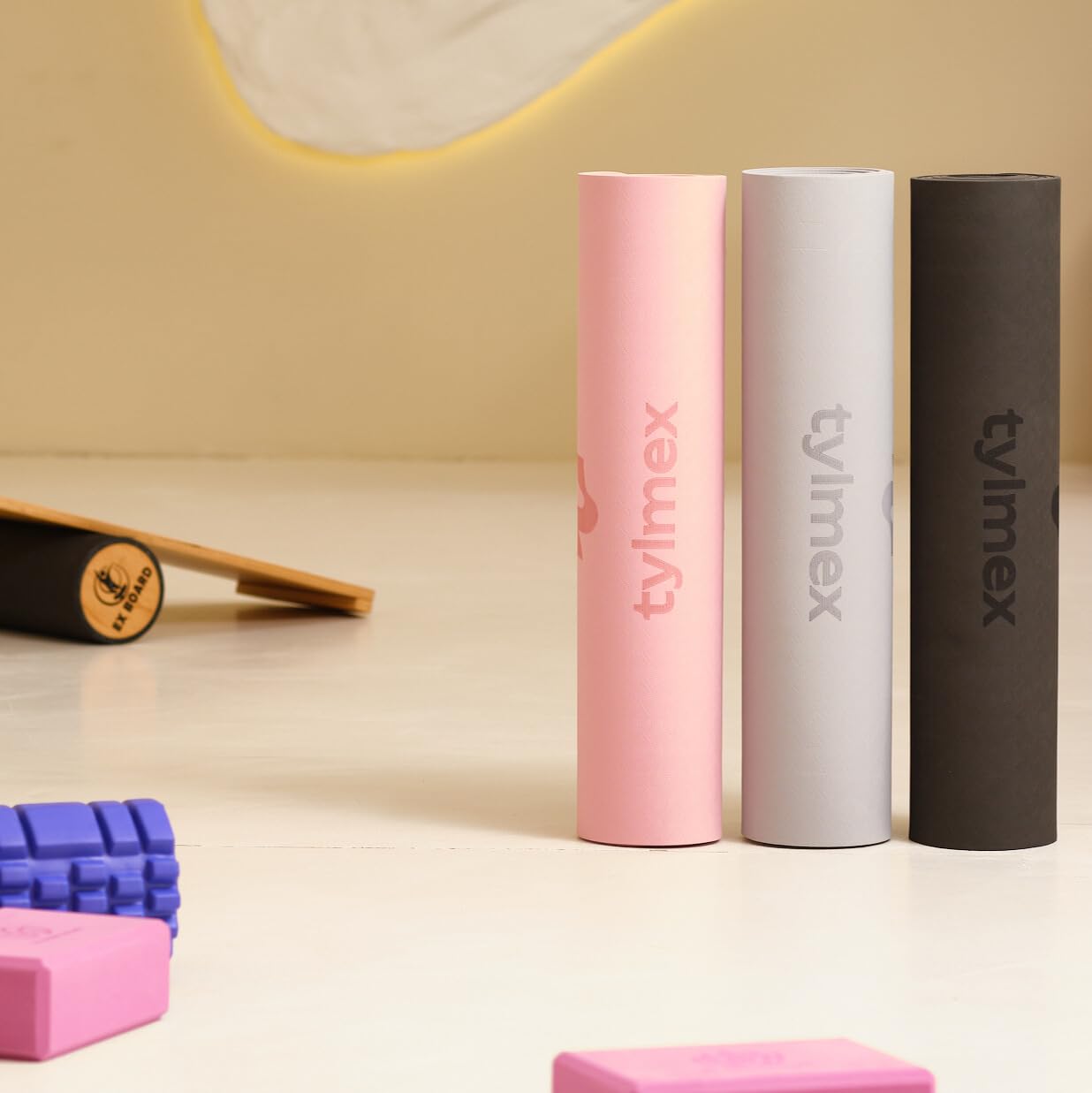 Tylmex Yoga Mat TPE non-slip 6mm | Eco-friendly fitness mat for yoga, pilates & workout | Exercise mat 183x61cm with carrying strap & online exercise guide - Pink