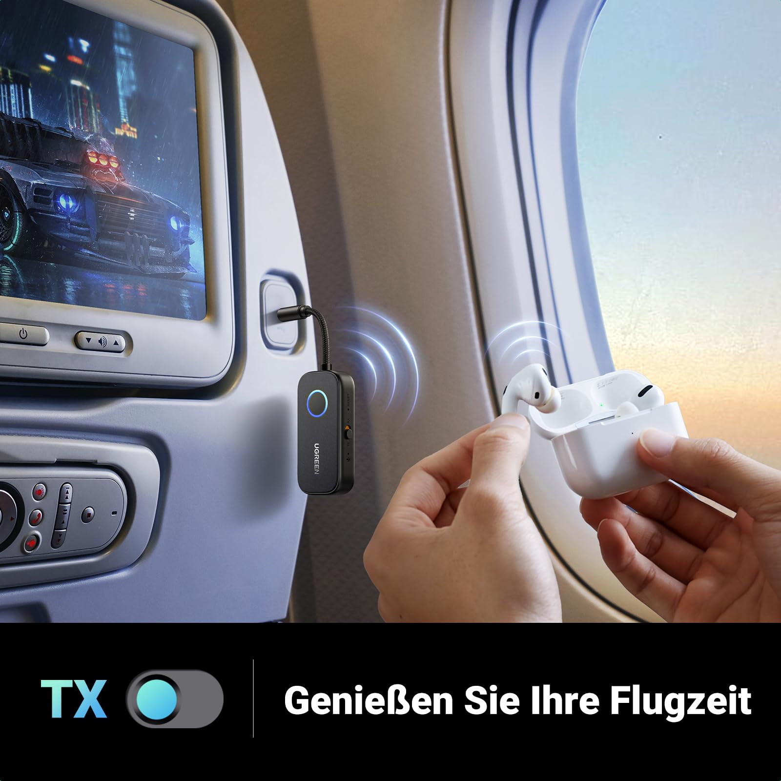 UGREEN Bluetooth 5.2 Transmitter Jack Adapter for Two Airpods 2 in 1 Receiver Compatible with TV, Stereo System, Airplane Audio Splitter for Headphones.