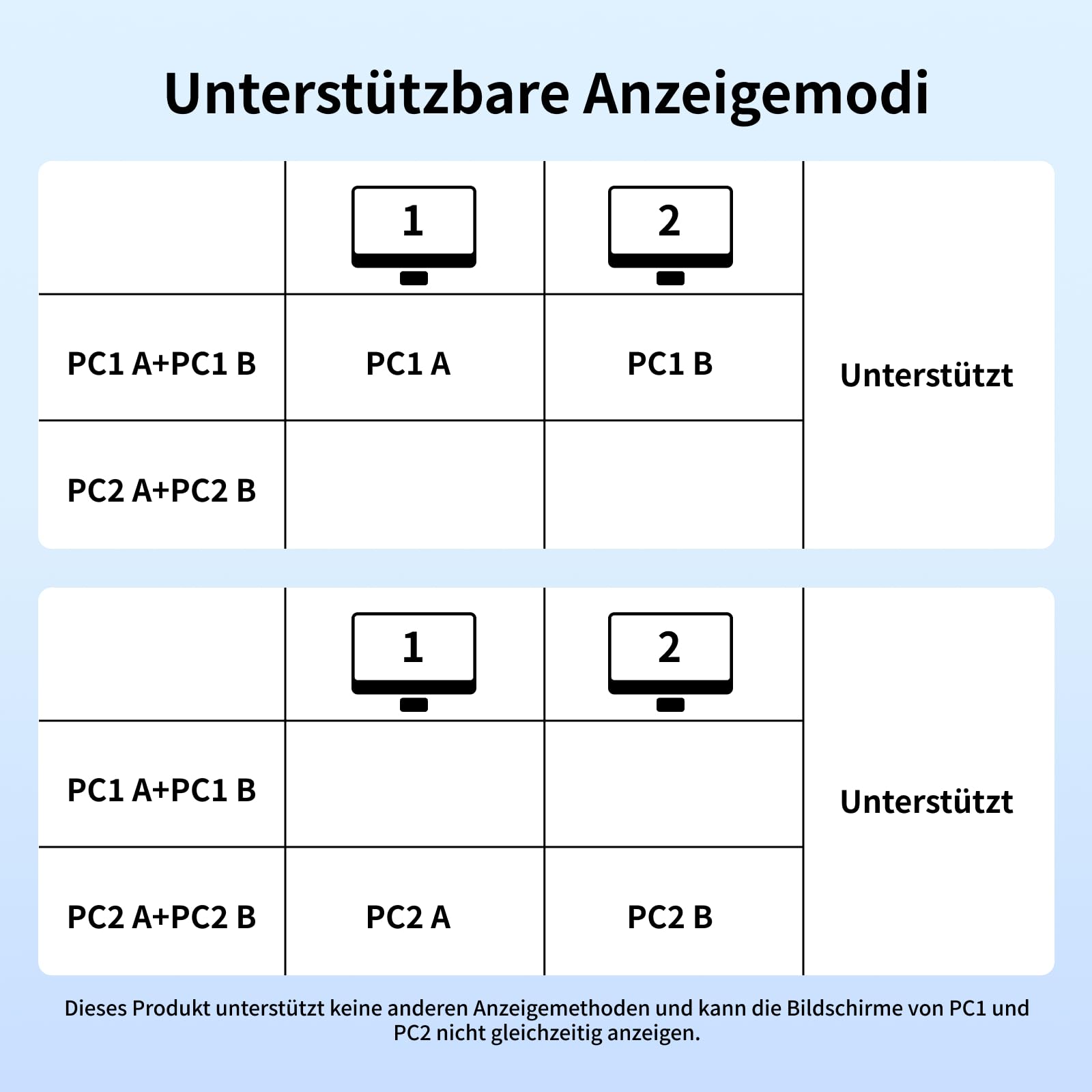 "["Dual-View Efficient Office: This KVM switch is specifically designed for desktop computers that output two HDMI signals. You can connect 2 desktop computers and 2 HDMI monitors simultaneously, switching between two desktops to display two identical or different screens. At the same time, you can connect 4 USB devices (USB-A 3.0*3 + USB-C 3.0*1), such as keyboards, mice, and hard drives. KVM USB 3.0 has a theoretical maximum transfer rate of 5Gbps.","4K Ultra HD Quality: Supports up to 4K@60Hz resolution, backwards compatible. Maximum transfer rate of 5Gbps, perfect playback of moving images, suitable for gaming, design, and other professional scenarios.","Dual-Monitor flexible switching: One button to switch the input signal source, support by key body or desktop controller operation to meet different usage habits. Note: the input and output must match the channel, cannot be crossed. Note: 2*HDMI output interface A/B, corresponding to the HDMI input A/B, cannot be displayed crosswise, support for different displays.","Wide Compatibility: Supports Windows, MacOS, Linux system. Plug-and-Play. 12V/2A DC power supply stable operation, suitable for long-term multi-device collaboration scenarios.","Accessories: HDMI 2.0 cable x4; USB-A cable x2; Desktop controller x1; DC5.5mm 12V/2A x1. Note: DC5.5mm 12V/2A, delivers US/Japanese/European/English plugs, you can replace the plug yourself."]"