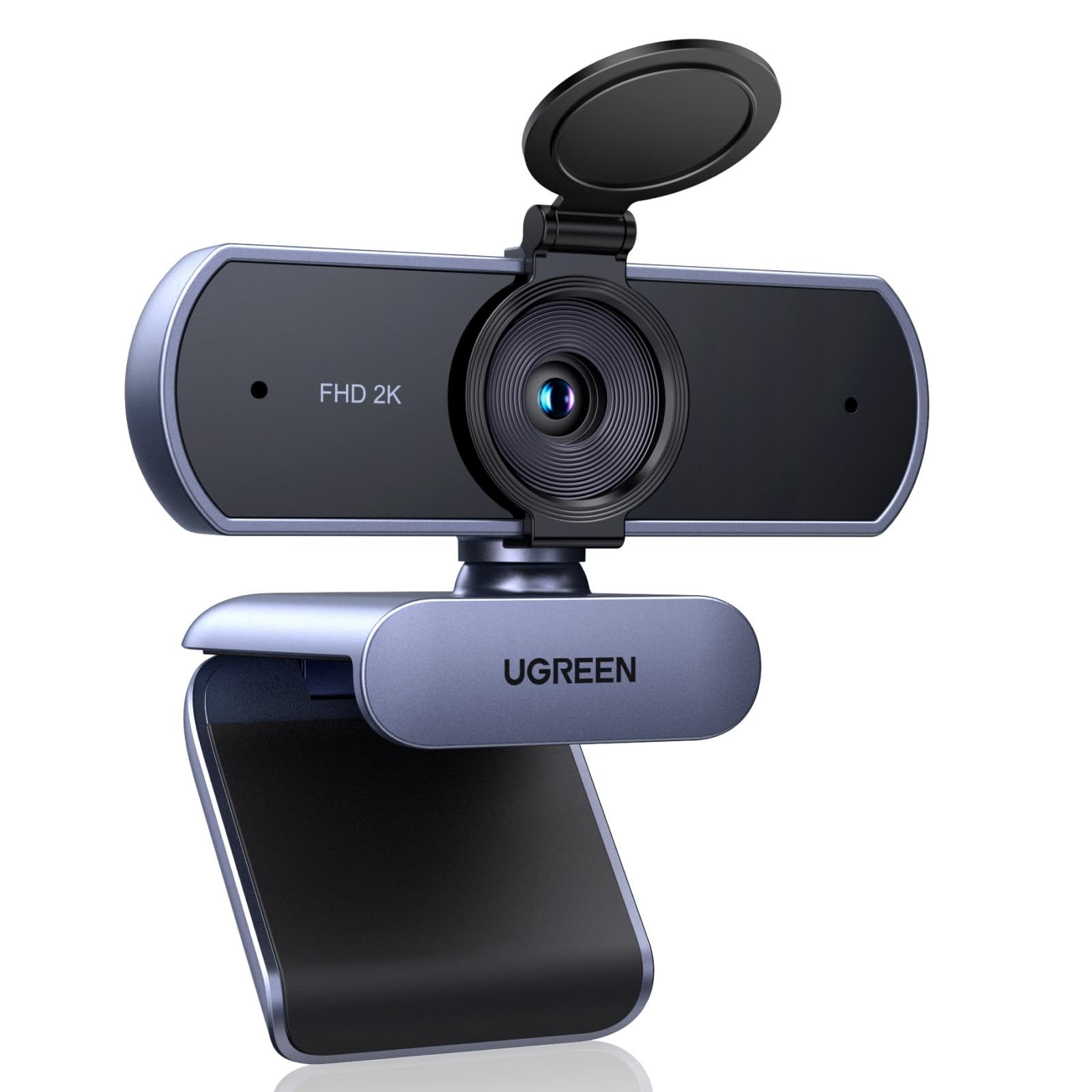 UGREEN Webcam 2K, USB A webcam with microphone, PC camera, fixed focus, 80° field of view, camera with privacy cover, automatic light correction, stereo sound, plug & play, PC camera for Windows/MacOS/Zoom/Skype.