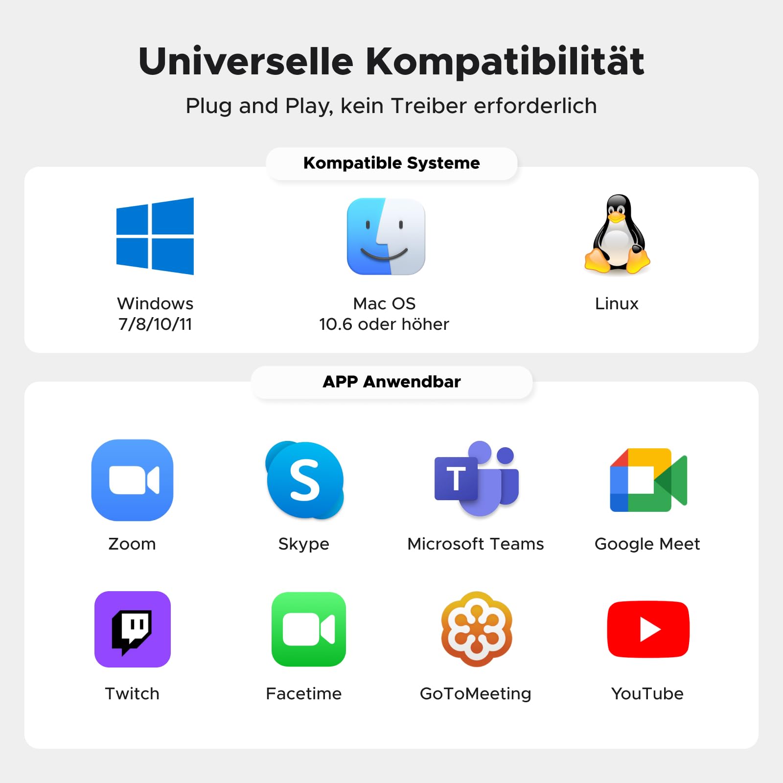 "【Plug and Play】This USB webcam is plug and play. It does not require a driver and works with Windows 7/8/10/11, Linux, Mac OS X 10.6 and higher, Android 5.0 and higher. The webcam is automatically recognized when the USB 2.0 connection is made to the computer. A 2M USB cable is included. It can be used with a clip on your computer screen, horizontally on a desk, or with a tripod (not included).",