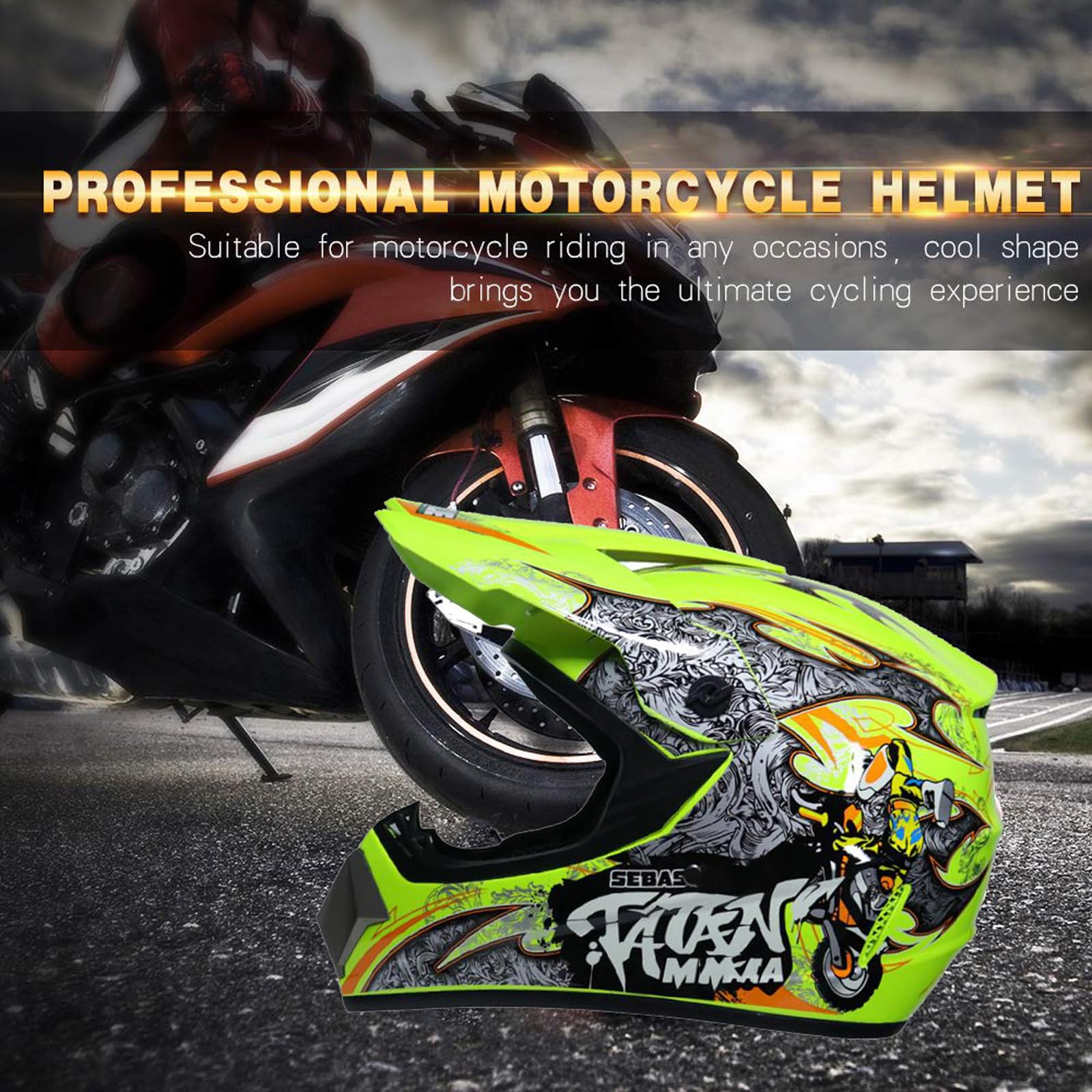➤ Motorcycle helmet not only protects the head but also reduces the impact on the eyes at high speeds. Suitable for motorcycle riding motocross, cross country, street bike, off-road, ATV, MTB, downhill dirt bike, cross bike, BMX, and more.