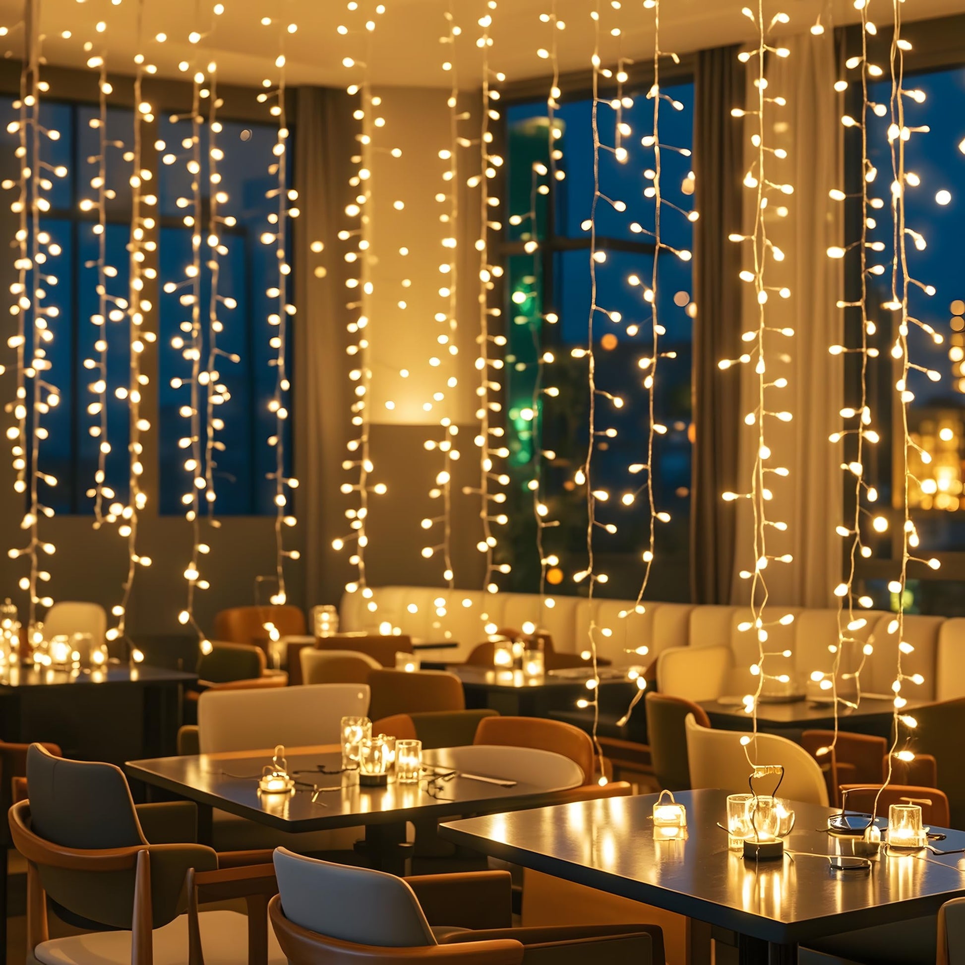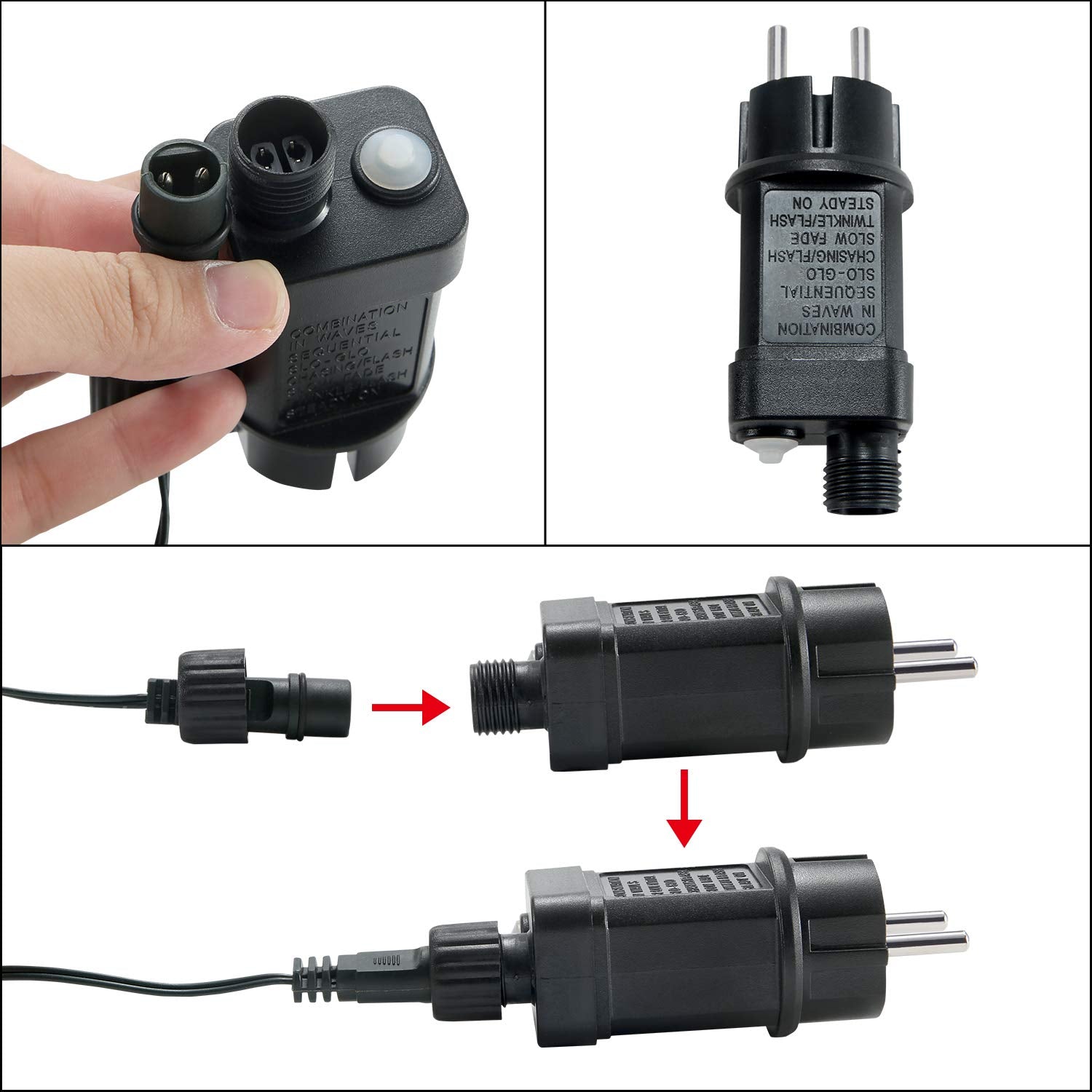 "Outdoor LED String Lights - Size: 80m, Number of LEDs: 800 LEDs, Color Temperature: Warm White, Color: Ink Green, with 6W Plug Standard US plug, Distance from Transformer to first LED: 3m, Input voltage: 220-240 V, ~ 50-60 Hz, Output voltage: Low Pressure 31V, Operating temperature: -25-40 ℃, with 8 Lighting Modes - 1. Combination 2. Wave 3. Sequential 4. Glow 5. Flash 6. Fade 7. Sparkle 8. Steady on, Waterproof and Durable - Low power consumption, safe and energy-saving, Waterproof: IP44, but the function box and plug are not waterproof. Keep the function box and plug dry and clean, with Memory Function - Retain the last setting every time you open it, Wide Application - A perfect decoration for Valentine's Day, Christmas, Easter, Halloween, garden party, wedding, shopping mall, etc. Suitable for indoor and outdoor decoration, create a warm and charming atmosphere"
