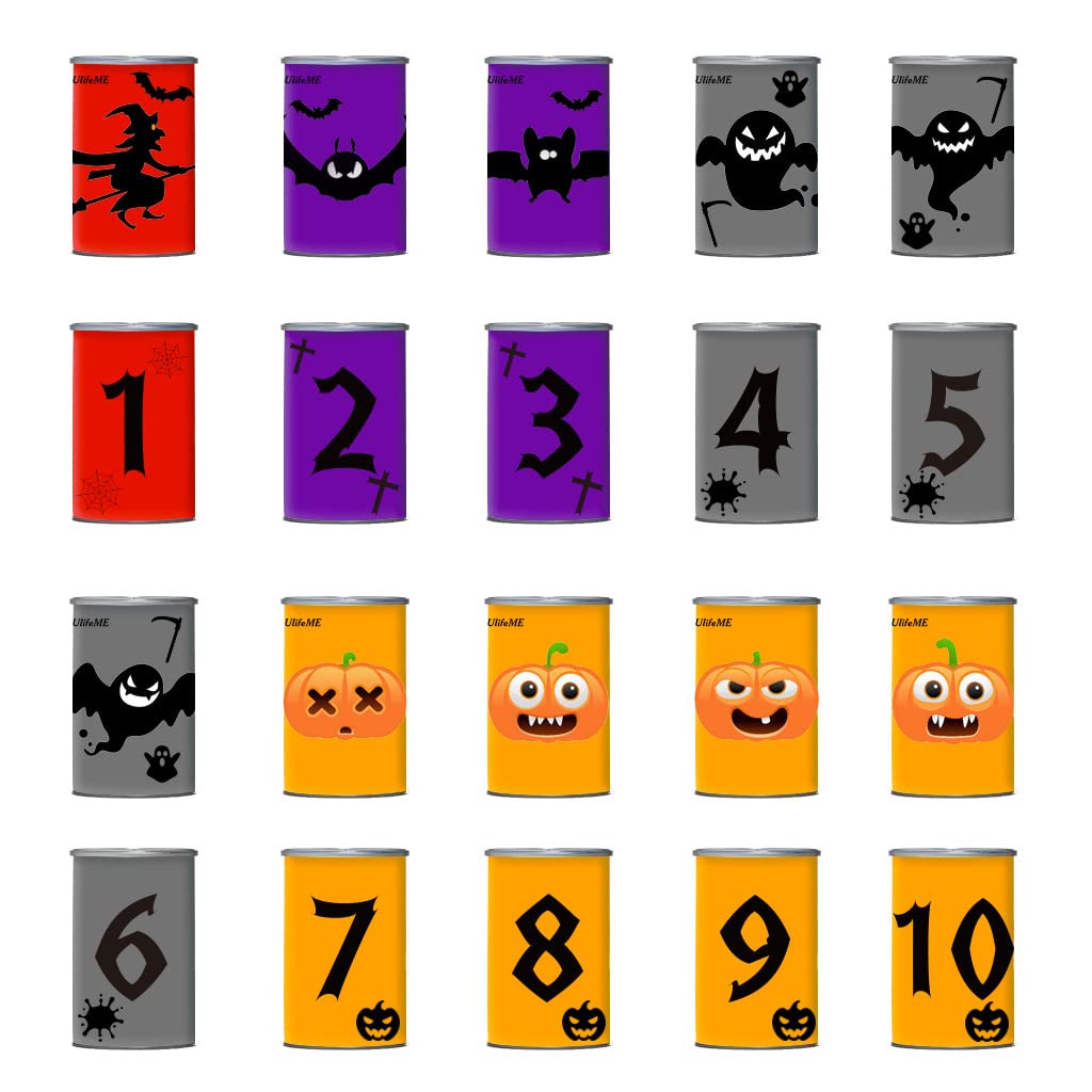 Ulifeme Kids Can Toss, can throwing game for children's birthdays & parties, Can Toss game gift with 10pcs Halloween-themed cans & 3pcs tossing bags set for kids & adults outdoor games.