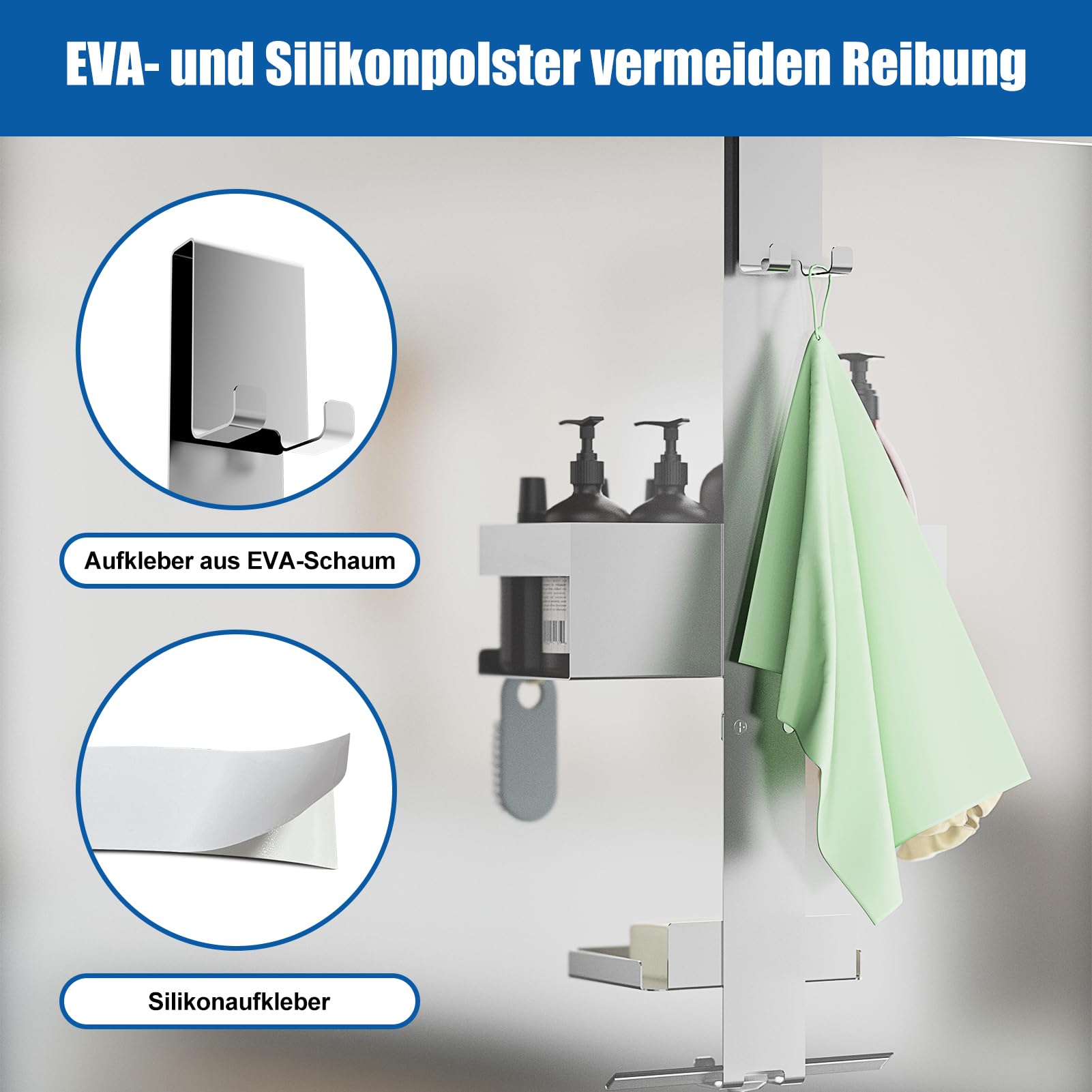 Sufficient Storage Space: Use the included white silicone mat to prevent friction between the glass and the shower caddy. Total length of the hanging shower caddy: 50 cm, two baskets provide enough space for shower gel, soap, shampoo, etc."