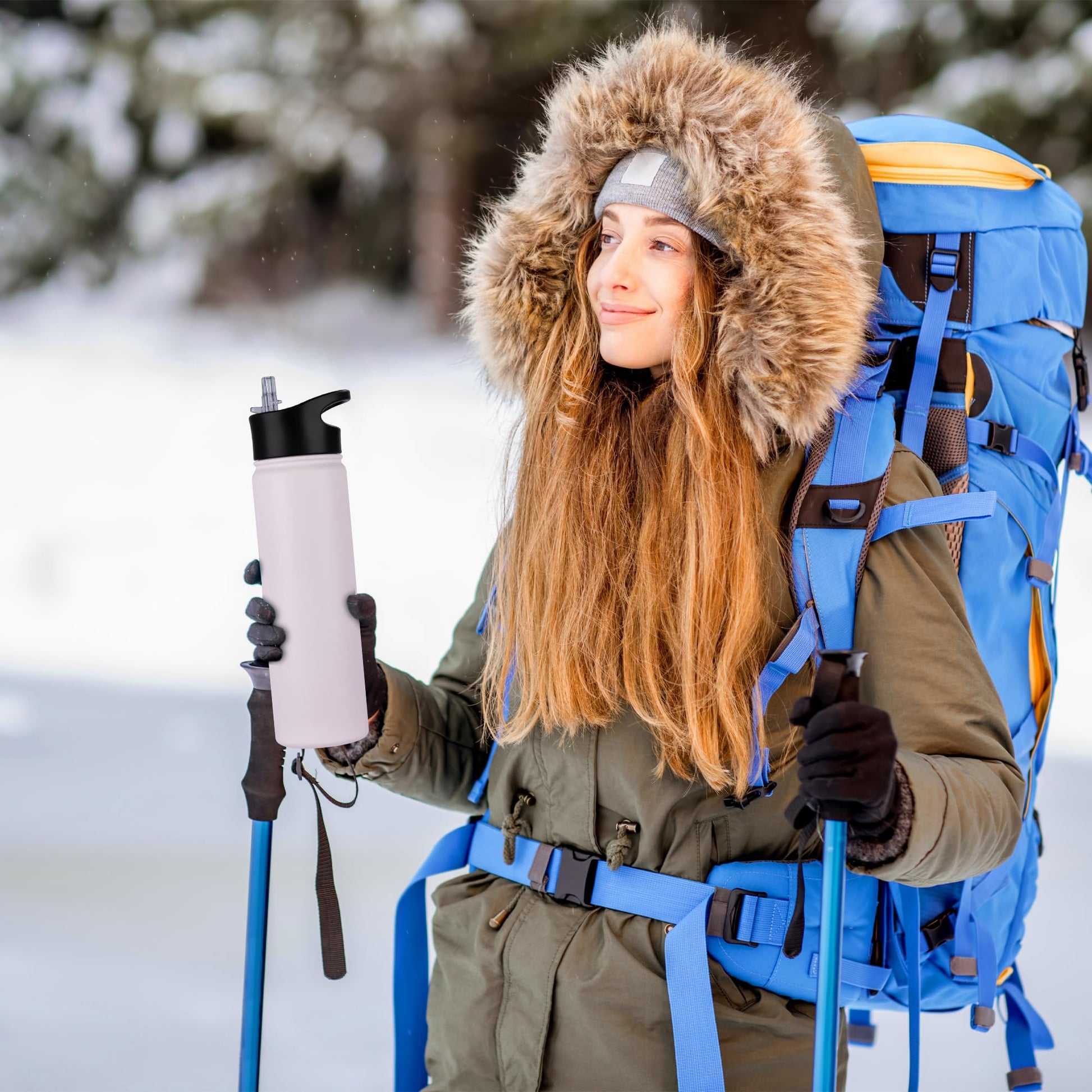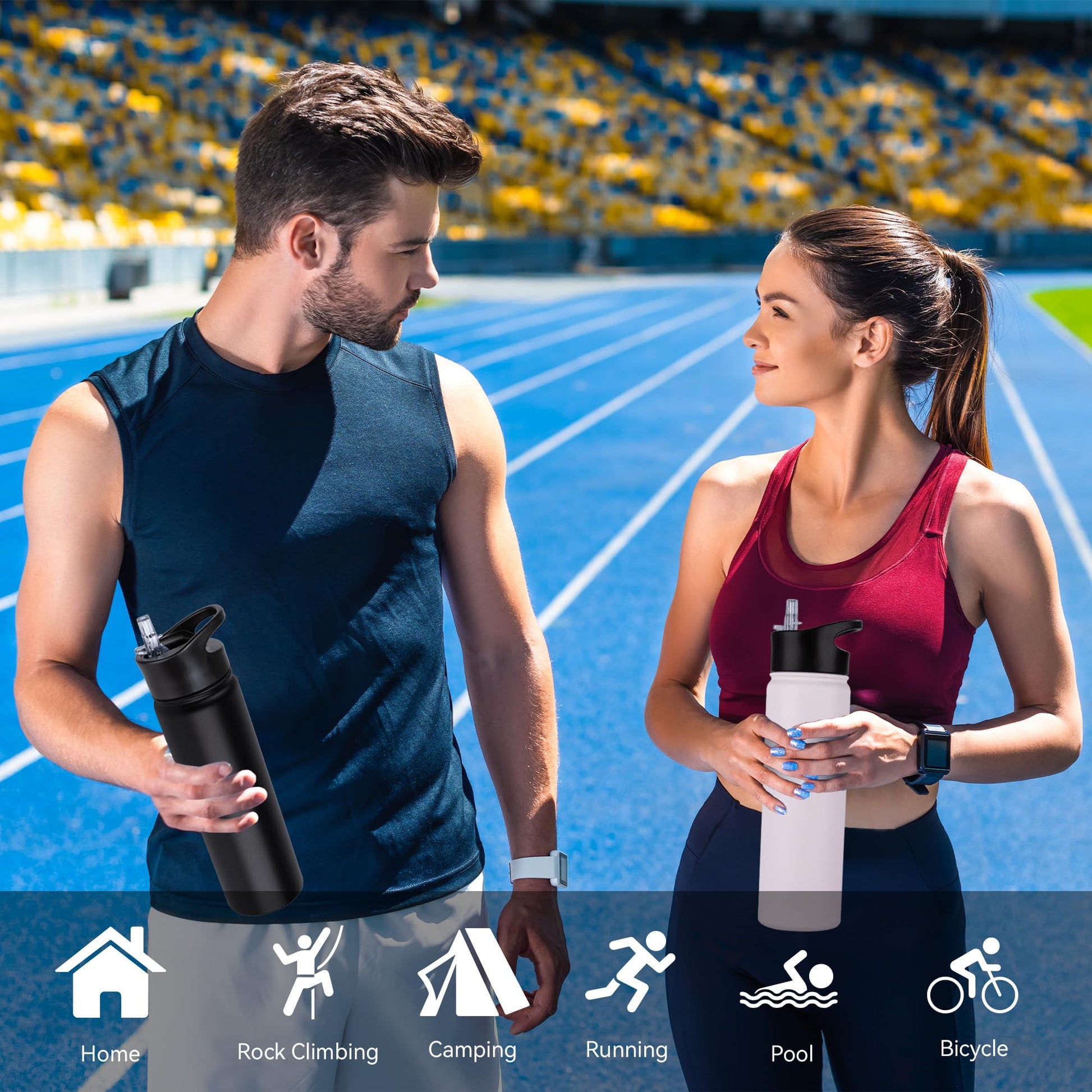 UMBFUN stainless steel water bottle - 750ml - with straw, leak-proof, suitable for carbonated drinks, BPA free thermos bottle (+2 lids) Vacuum double-wall insulation for sports, travel, camping, school, bike, gym.