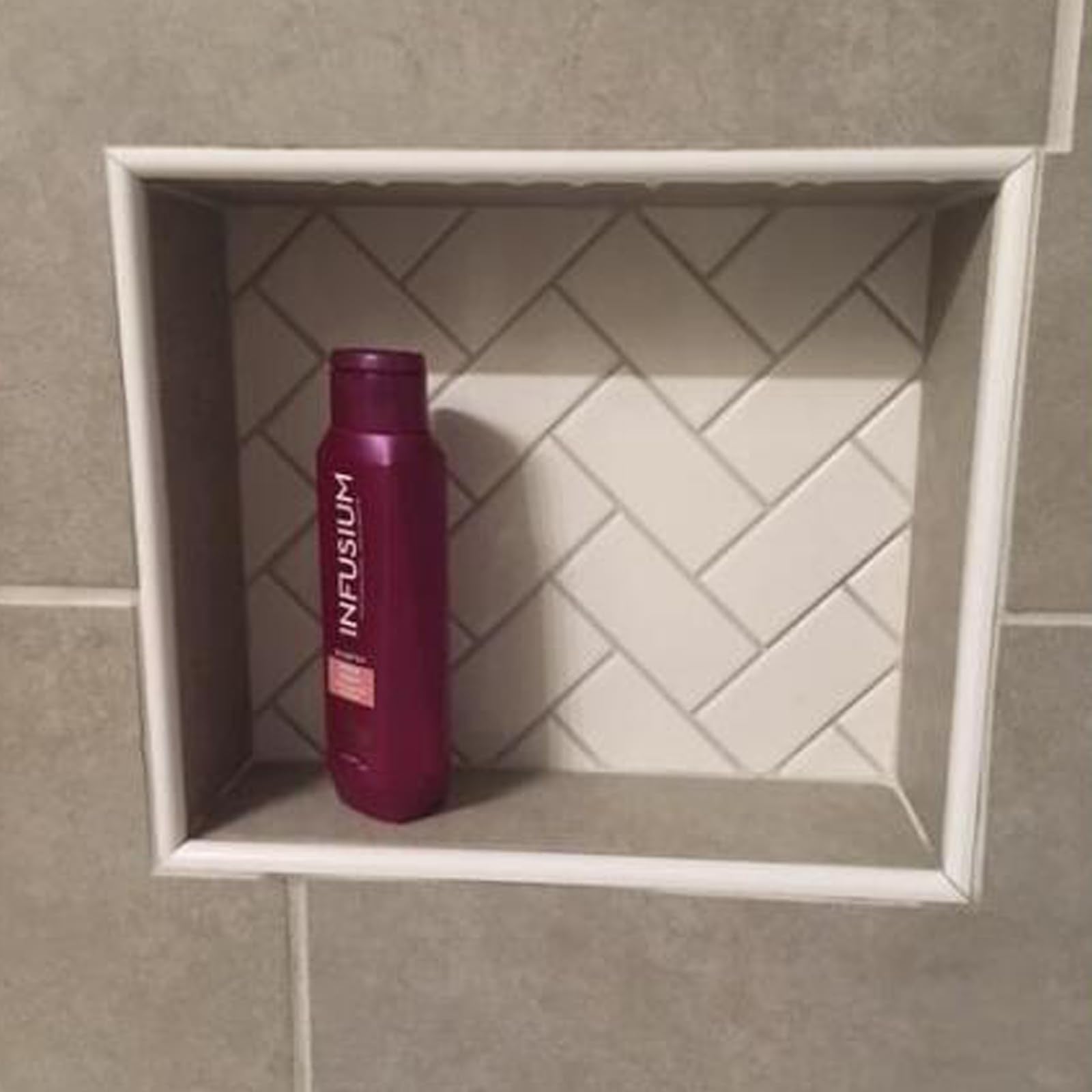 ["Size: Inside: 14x12x4 inches, Outside: 16x14x4 inches, this size wall niche shower can hold soap, shampoo, body wash, and most other toiletries.","Material: Wall niche made of Acrylonitrile Butadiene Styrene (ABS) high-quality plastic, this material has high hardness, corrosion resistance and waterproof and leak resistance.","Tilable: Unlike stainless steel, our shower niche has a non-slip texture on the surface, making it easy to tile and cheaper; the inner wall of the shower niche has a certain horizontal slope angle, preventing water from accumulating inside.","Flexible Installation: Suitable for drywall and masonry walls; can be installed horizontally or vertically; can also be combined with other wall niches for joint installation. Prefabricated wall niches make installation easier and save money on installation materials.","Multi-Scenario: This niche can be used not only in the bathroom, but also in the living room, bedroom, kitchen, etc., providing additional storage space and a nicer appearance!"]