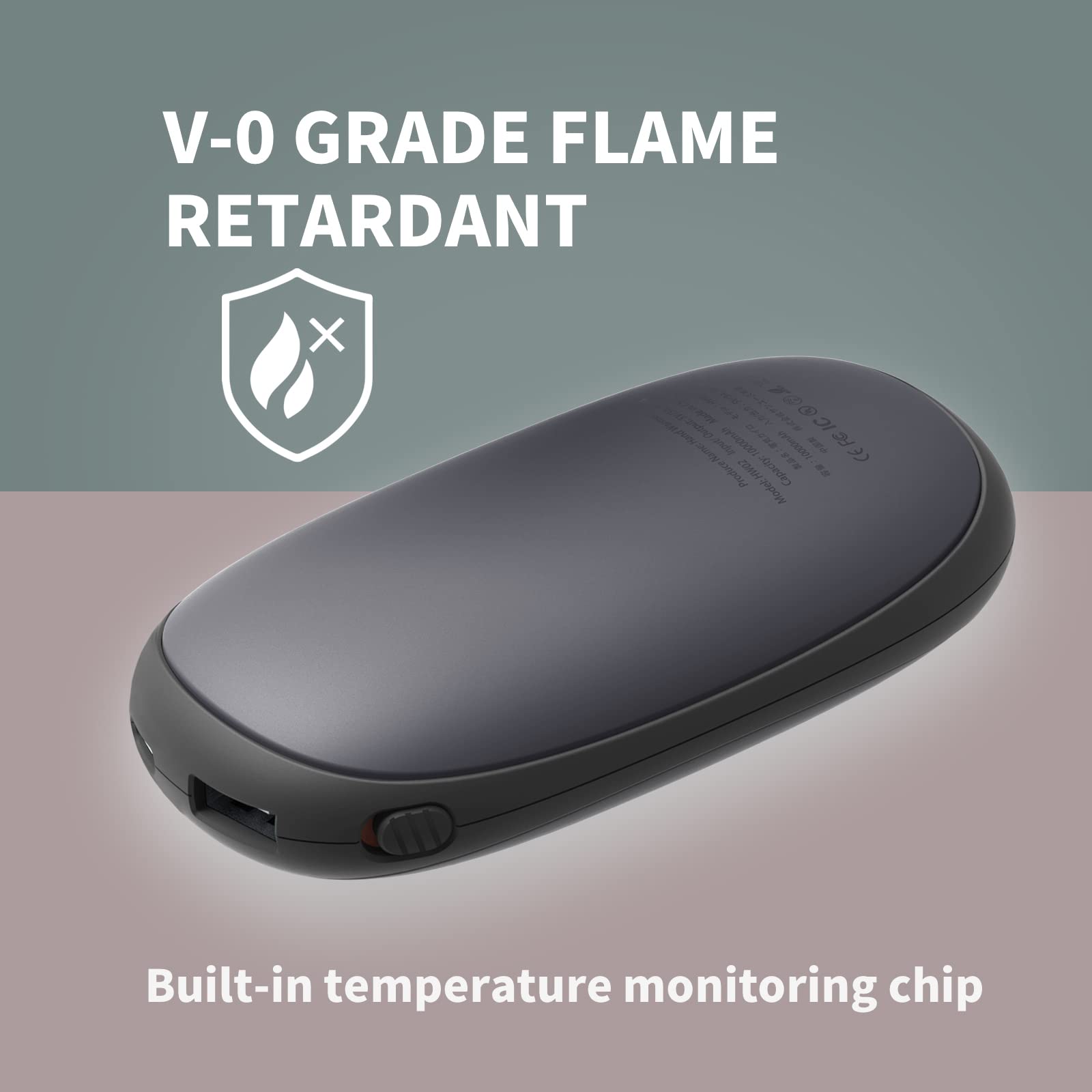 Worry-free use: The built-in temperature monitoring chip conducts constant real-time temperature monitoring. The frame of the USB hand warmer is made of flame-retardant V-0 material, Acrylonitrile Butadiene Styrene Copolymers (ABS), and Polycarbonate (PC), for worry-free use.