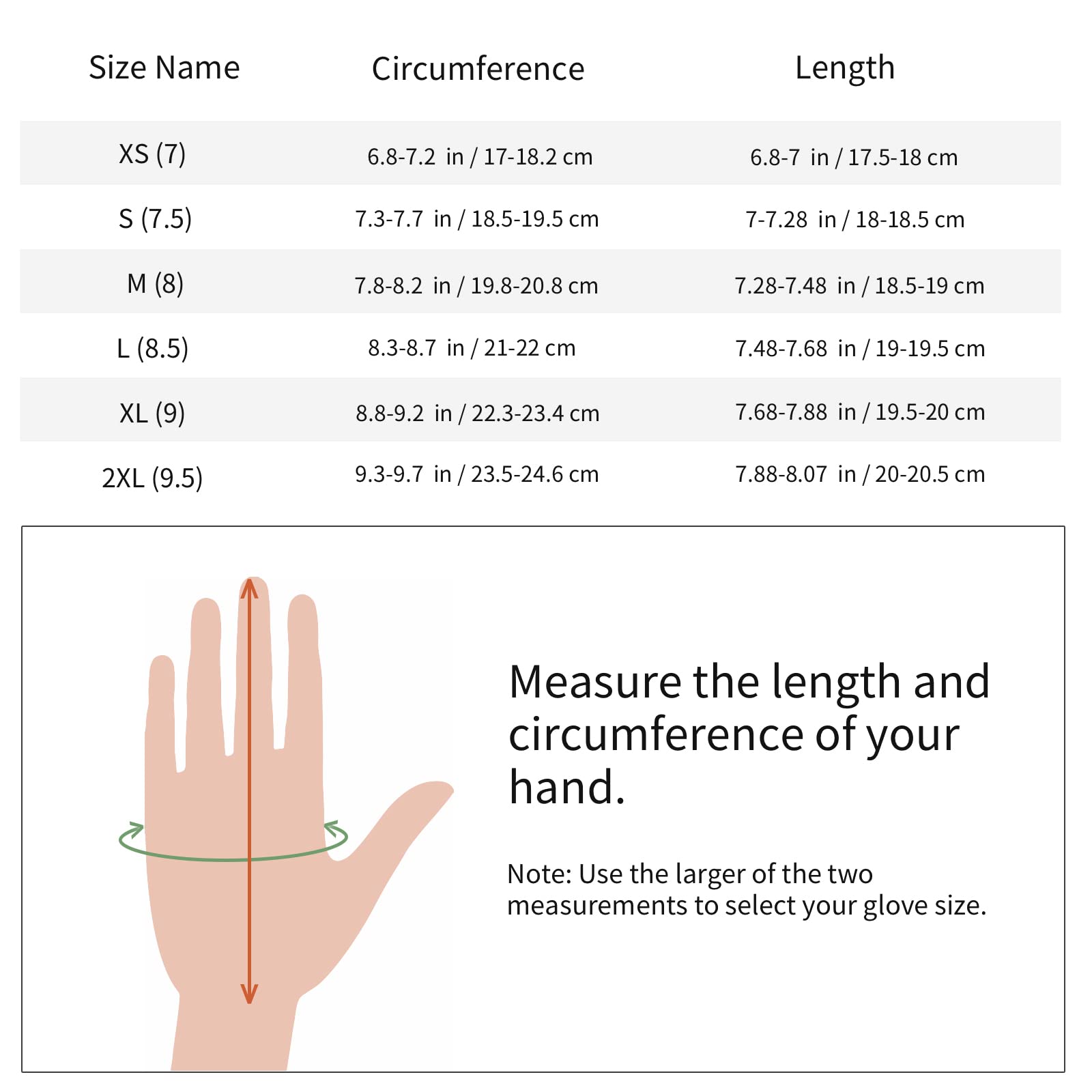["Excellent heat retention: The surface of heated gloves is made of goat leather, highly elastic, and 3-layers breathable water-repellent fabrics. Filled with 2 layers of 3M Thinsulate. Interwoven heating wires provide even heat distribution and withstand folding or bending without damage. Only 8 seconds heating time required. Heated gloves are a must for skiing, cycling, and outdoor work, etc.. Keep your hands warm all day long.", "Long battery life & safety: Heated gloves have 2 lithium batteries with a capacity of 7.4V 2200mAh. These can effectively generate heat even at -20°C (but not recommended for use below -20°C/0°F). There are 3 temperature settings (low, medium, and high), corresponding to 95F/35°C, 113F/45°C, and 140F/60°C, with approximate heating times of 7 / 4 / 2.5 hours, providing you with long-lasting warmth. Batteries comply with IEC 62133.", "Faster charging & portable: The double-port USB charging cable of heated gloves for men and women is compatible with Type A and Type C. They are lightweight and portable, suitable for use with different types of chargers from various countries. It also supports 15W and higher fast charging and only takes 4 hours for a full charge.", "Humanized technological design: The leather palm protection design makes heated gloves extra soft, non-slip, and wear-resistant. The Styrene-Butadiene Rubber (SBR) on the back of the hand provides additional impact protection. Our battery design of heated gloves allows for bending in the middle to conceal them in the battery pocket; they fit the wrist without slipping. All our heated glove designs can be easily operated with one hand.", "Sensitive touchscreen: A touchscreen heated glove with a large static genuine leather allows fingertip and finger pulp to swipe across the touchscreen of your phone, even with its tempered film on your phone. You don't have to take off your heated gloves to use your phone in the freezing winter."]