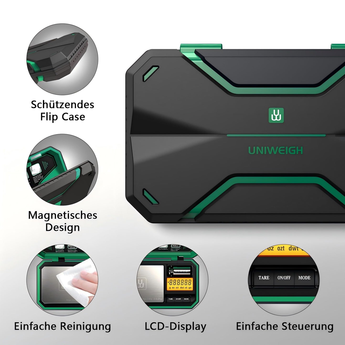 UNIWEIGH Digital Pocket Scale 200g/0.01g Precision Scale, Portable Mini Scale, Jewelry Scale, Kitchen Scale, Coin Scale, Gold Scale, Gram Scale with 50g Calibration Weight - Green