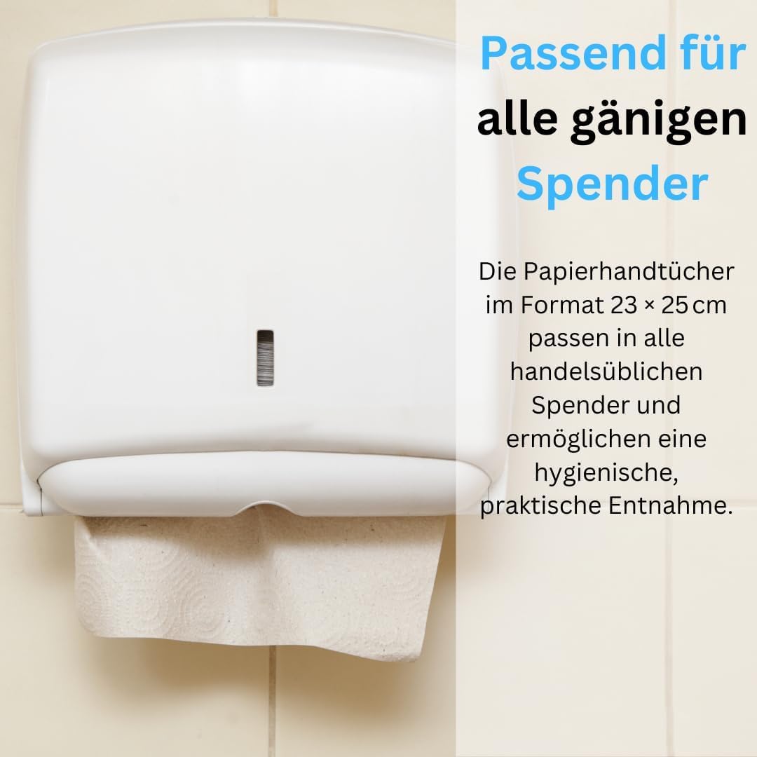 ["High-quality folded towels: Our white paper towels are made of cellulose and offer reliable absorption for effective hand drying. Perfect for offices, restaurants, and private households.",
