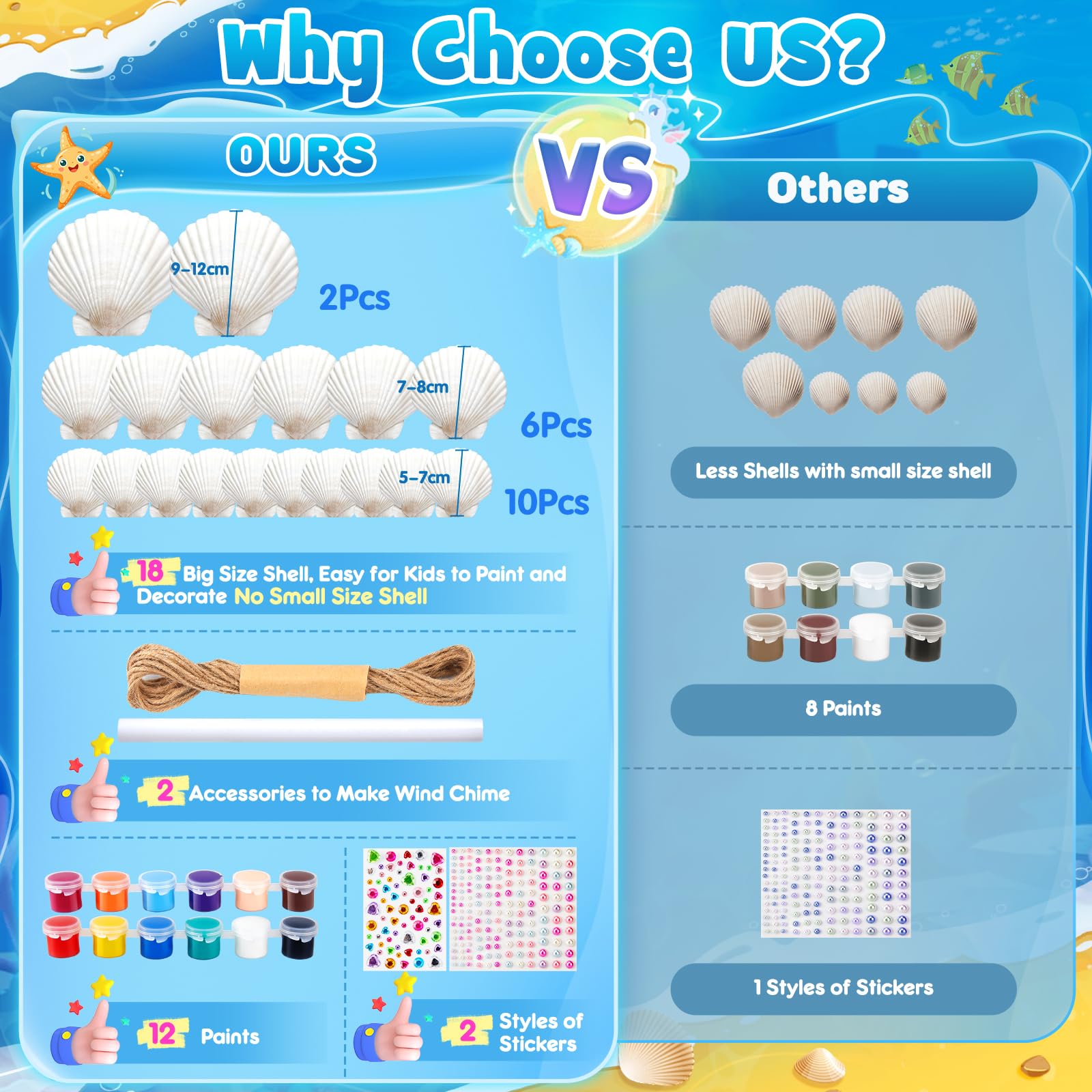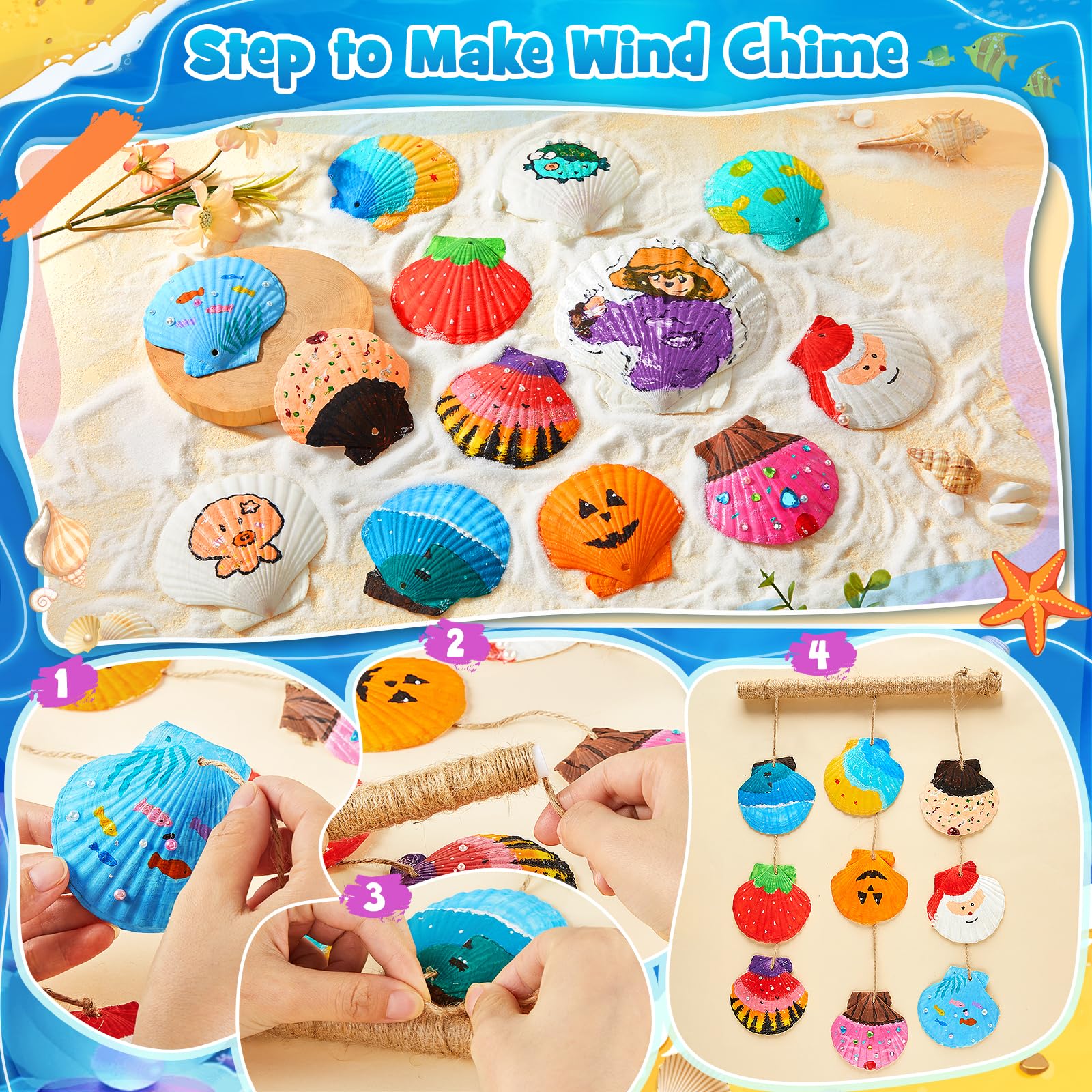 UPDOKIT Shell Painting Kids Set, children's birthday crafting, Christmas DIY Crafting Painting Toy craft set for kids aged 4 5 6 7 8 9 10 11 12 years old Girls Boys, Wind Chime Accessories