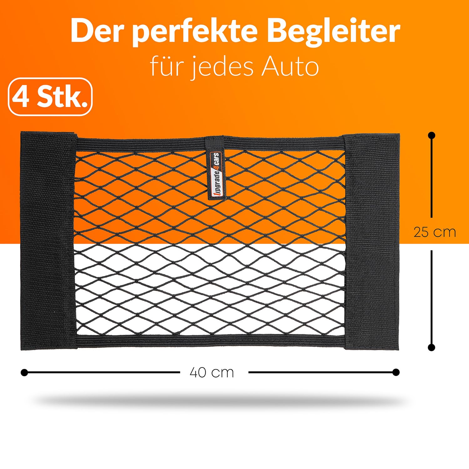 ["⭐️ Upgrade4cars Kofferraumnetztaschen Set 🏆 Dein treuer Begleiter für einen ordentlichen Kofferraum 🥇","⭐️ Material: Kofferraum Netztasche aus Polyester mit Klettstreifen an der Rückseite","⭐️ Eigenschaften: Anpassungsfähig, pflegeleicht, bis zu 10,000 Öffnungszyklen","⭐️ Lieferumfang: 4 Kofferraum Organizer Netze - 40 x 25 cm","⭐️ Highlights: Unkomplizierte & schnelle Montage, unschlagbares Preis-Leistungsverhältnis | Upgrade4cars 🏆 𝙪𝙥𝙜𝙧𝙖𝙙𝙚 𝙣𝙤𝙬!"]
