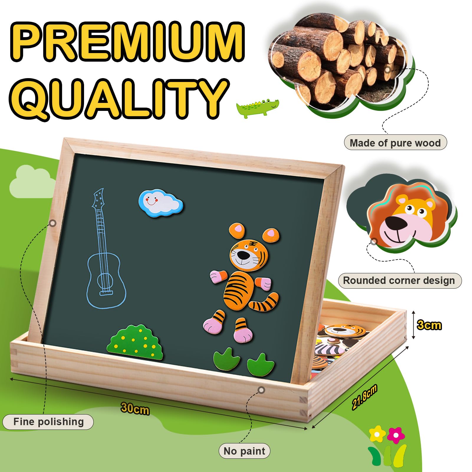 Uping Magnetic Wooden Puzzle 100 Pieces, Double-Sided Magnetic Board, Drawing Board Colored Pencils Chalks, Forest and Animal Puzzles Toy for Ages 3+