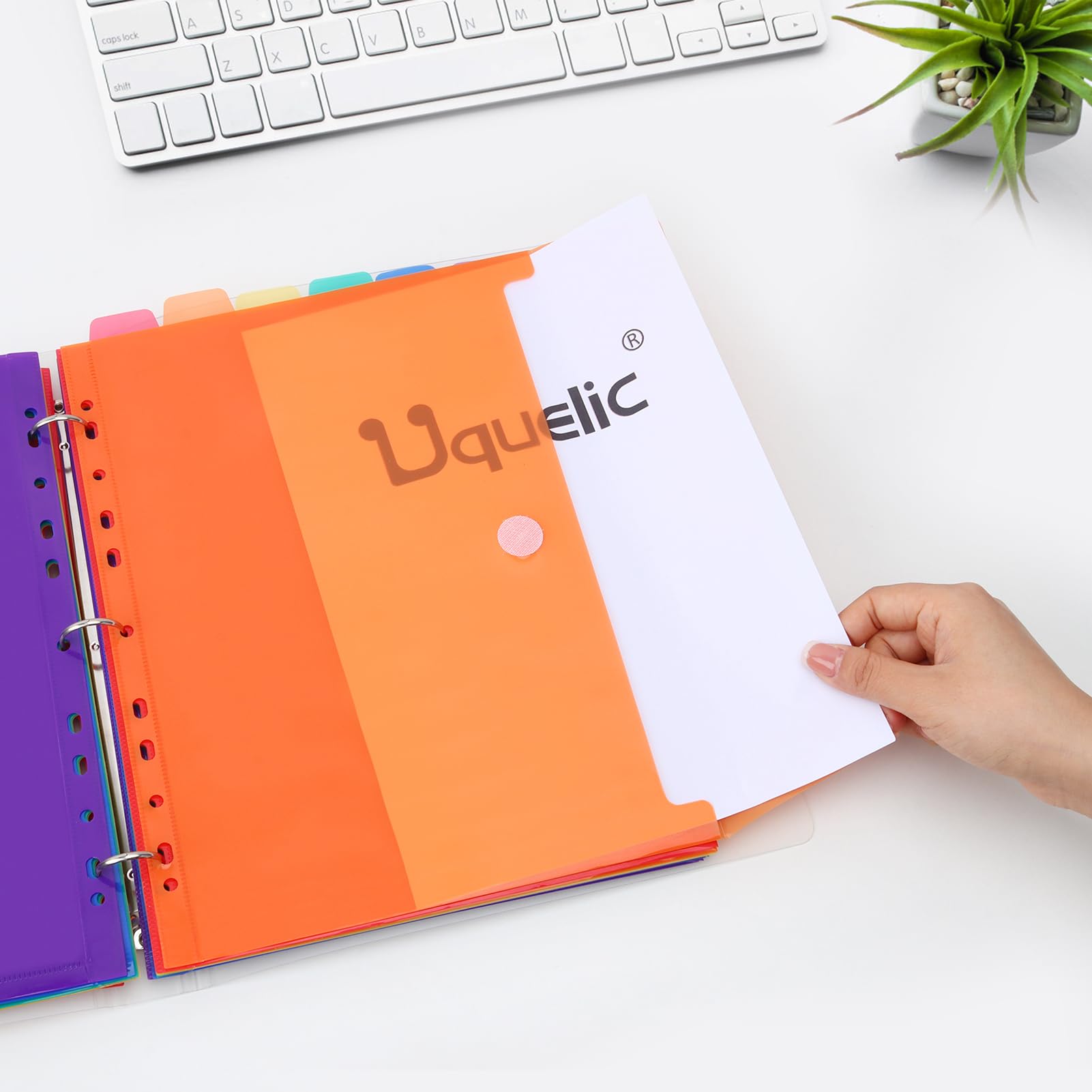 Uquelic A4 document folder for filing, A4 slim ring binder with 12 plastic document pockets (6 colors), Waterproof folder organizer - Transparent