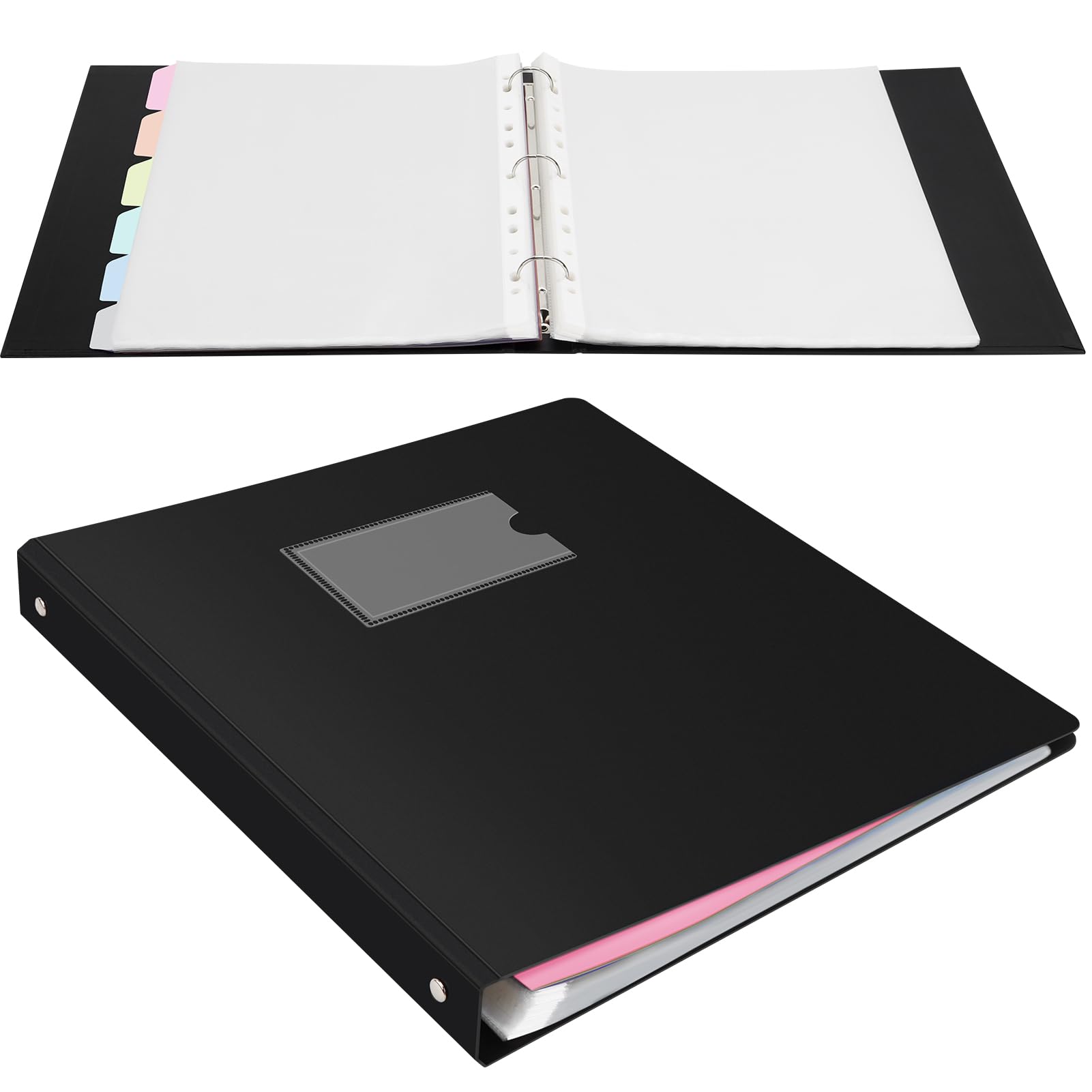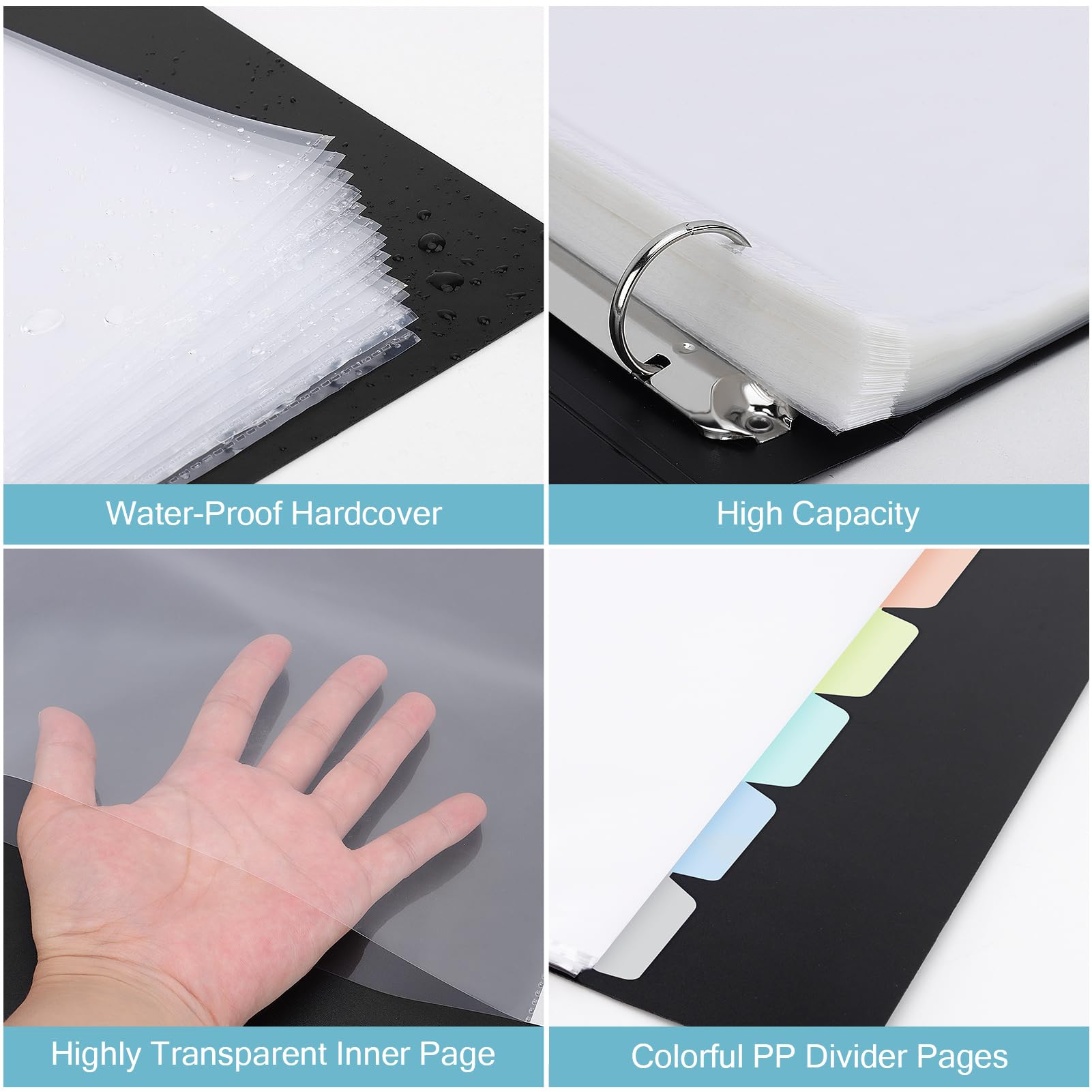 ["Flexible design for easy file organization: The 3-ring binder design allows for removal, addition, or rearrangement of the clear sleeves as desired","Large capacity: The folder holds 80 A4 clear sleeves (top open)","Versatile use: Ideal for schools and offices to store documents, presentations, projects, artwork, certificates, photos, and sheet music","Easy handling: With adhesive labels for marking and 6 colorful PP dividers for easy classification and indexing","High-quality material: Durable, waterproof polypropylene covers and 50-micron sleeves protect your documents from wrinkles and keep them tidy"]
