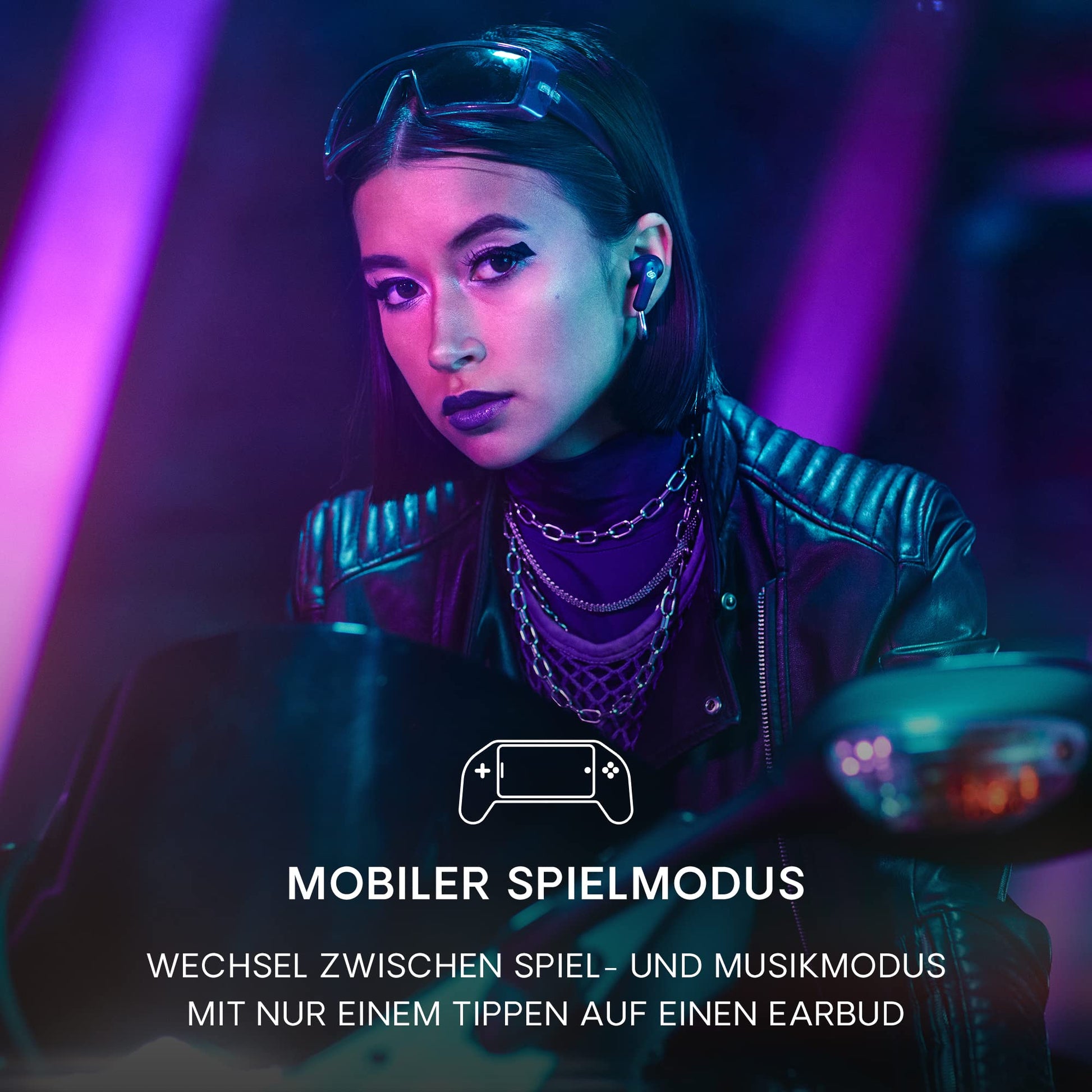 "LONG PLAYTIMES: With our fast-charging USB-C headphones, you can listen and play for 8 hours straight. With the included charging case, you can play and enjoy audio experiences for up to 32 hours with our Gaming In-Ear Headphones.",