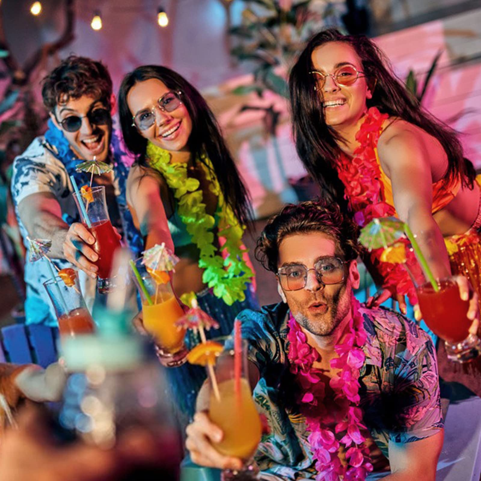 Decorate your party: DIY summer decoration for a tropical island atmosphere - for Luau parties, Aloha celebrations, birthdays, beach parties, cocktail parties, bikini parties, BBQs, or jungle or tropical-themed parties. The garlands can be worn as personal decoration or contribute to the party atmosphere.