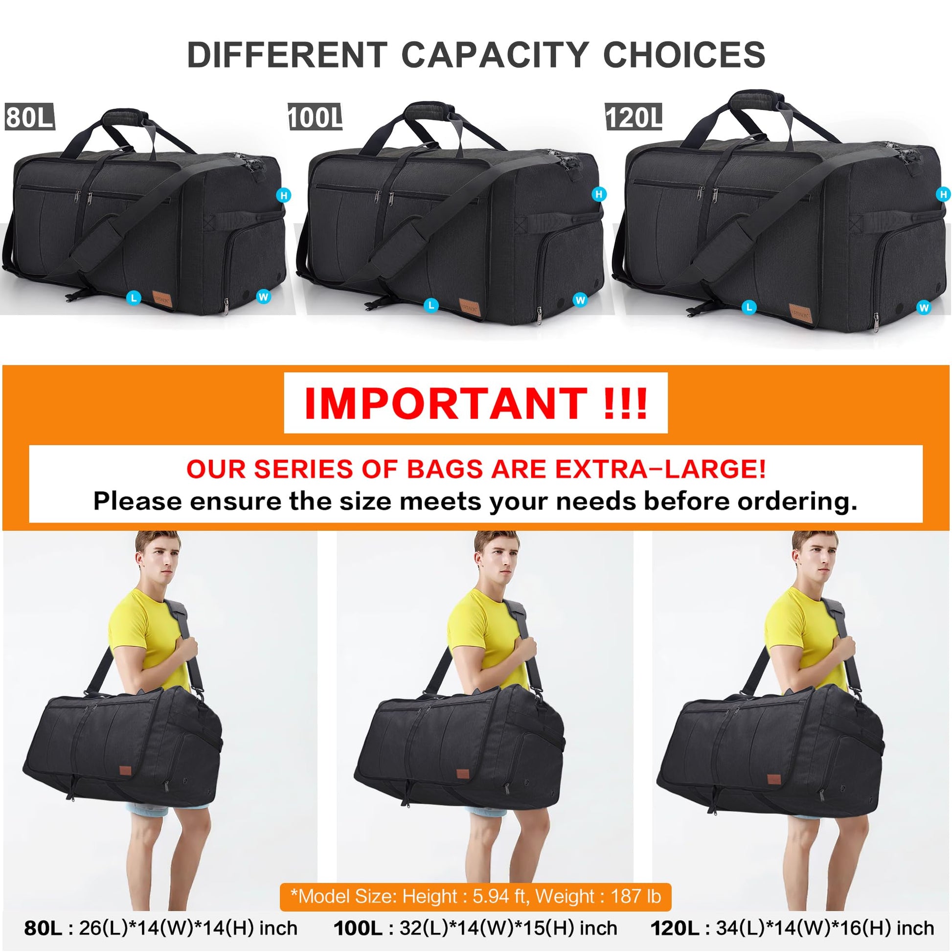 Urtala Foldable Travel Bag for Men & Women, 100L Large Weekender Overnight Bag with Shoe Compartment, Waterproof Carry-on Bag/Sports Bag