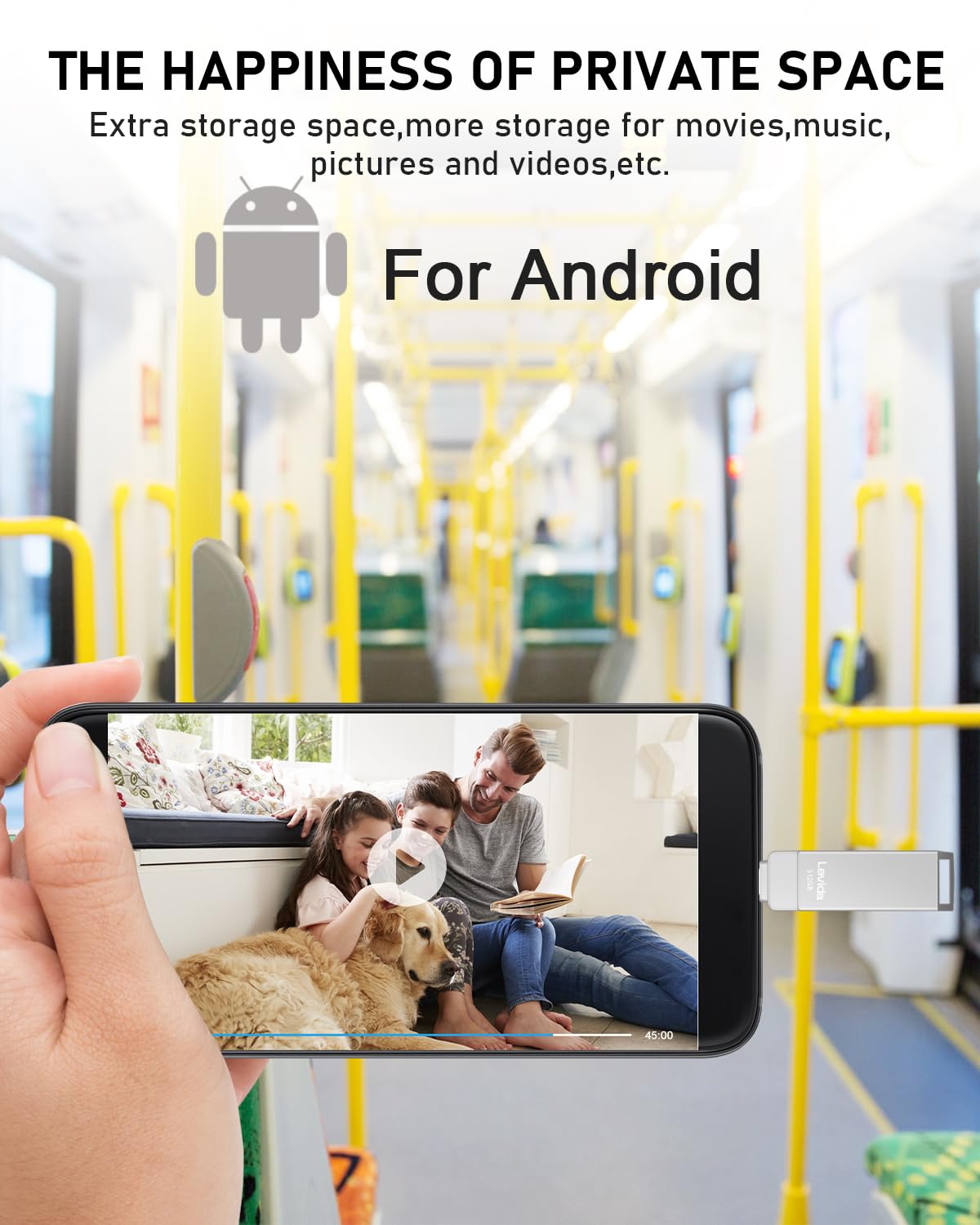 ["✅【Large Capacity and Fast Transmission】 - The Levida USB Stick for phone has a storage capacity of 512 GB, read speeds of up to 80 MB/s, and write speeds of up to 45 MB/s, which is 300% faster than USB 2.0. Allows for easy file transfers between Android, Phone, Pad, Phone, and computer, improving efficiency and saving time. Great usb external hard drive for Smartphone!",