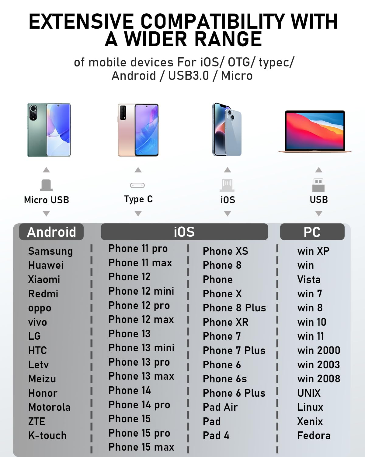 "✅【Easy External Storage Management】 - This high-quality usb backup stick allows you to easily transfer photos, videos, and files to the high-speed storage stick for mobile phones, significantly solving the issue of limited phone storage. Even with network problems, you can quickly view movies, photos, and music directly from the usb stick mobile phone.",