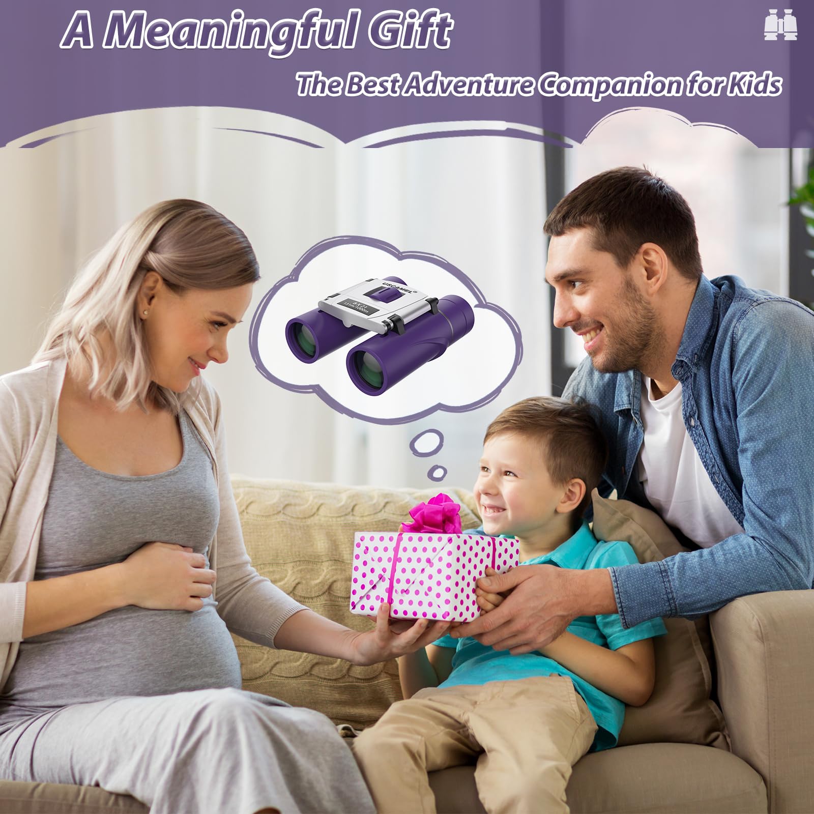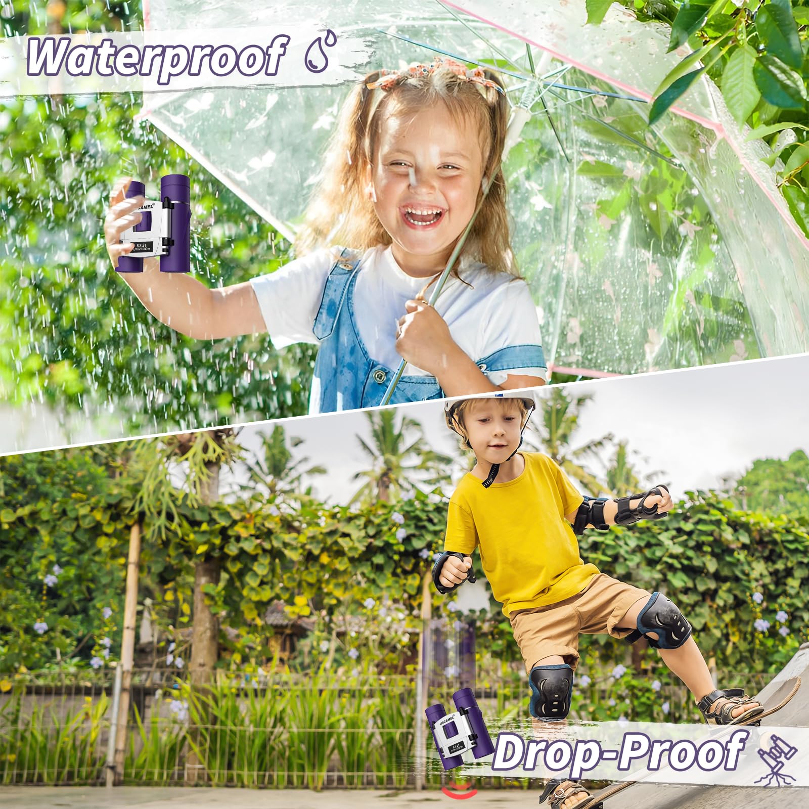 USCAMEL Binoculars for Kids and Adults, 8x21 Small Pocket Binoculars Compact for Bird Watching and Hunting (Purple)