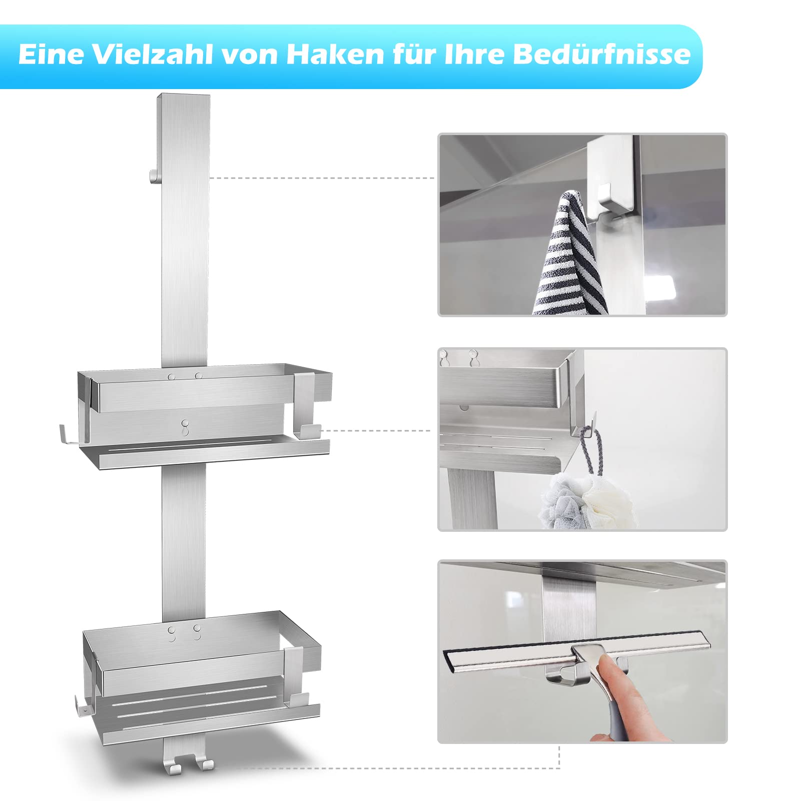 Dimensions: Use the included EVA protective pads to avoid friction between the glass and the shower caddy. Shower caddy for hanging total length 66 cm, two baskets (23×10×8 cm) provide ample space for shower gel, soap, shampoo, etc."