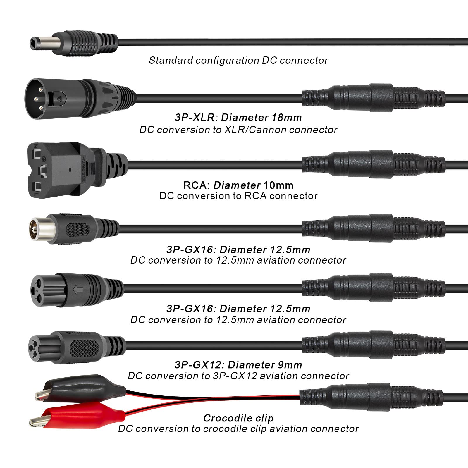 Product information: - The charger comes with a plug: DC 5.5*2.5MM connection interface is also suitable for 5.5*2.1MM size; - Includes three types of connectors: 3P-XLR, 3P-GX16, 3P-GX12; - Input: - Output: 81-88V, 3A; - Weight: 600g; - Product dimensions: 230x120x70mm