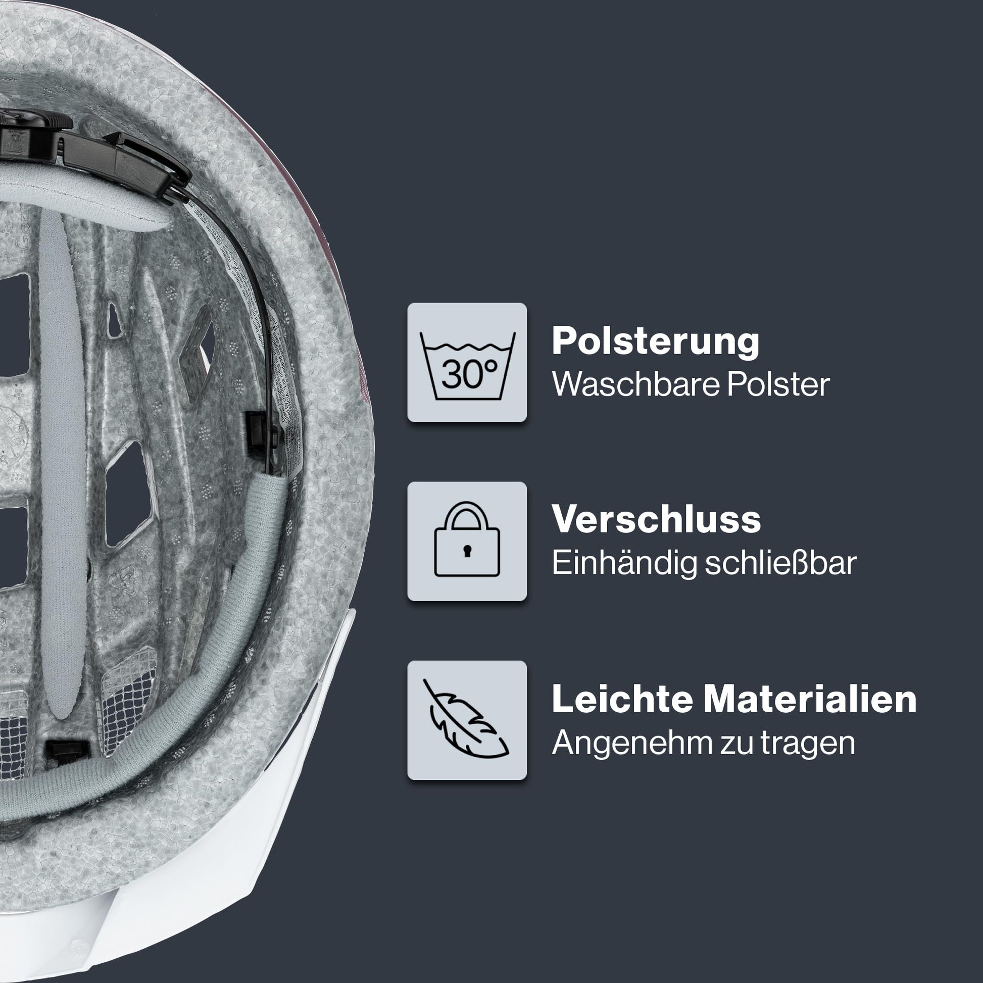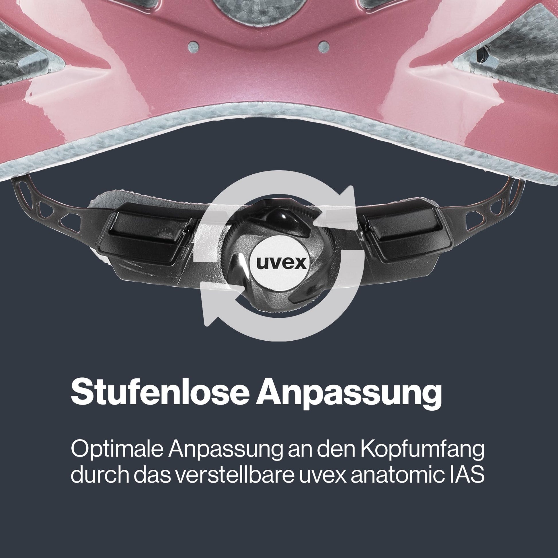 uvex air Wing - Lightweight all-round helmet for women and men - individual size adjustment - expandable with LED light - White - rose - 52-57 cm