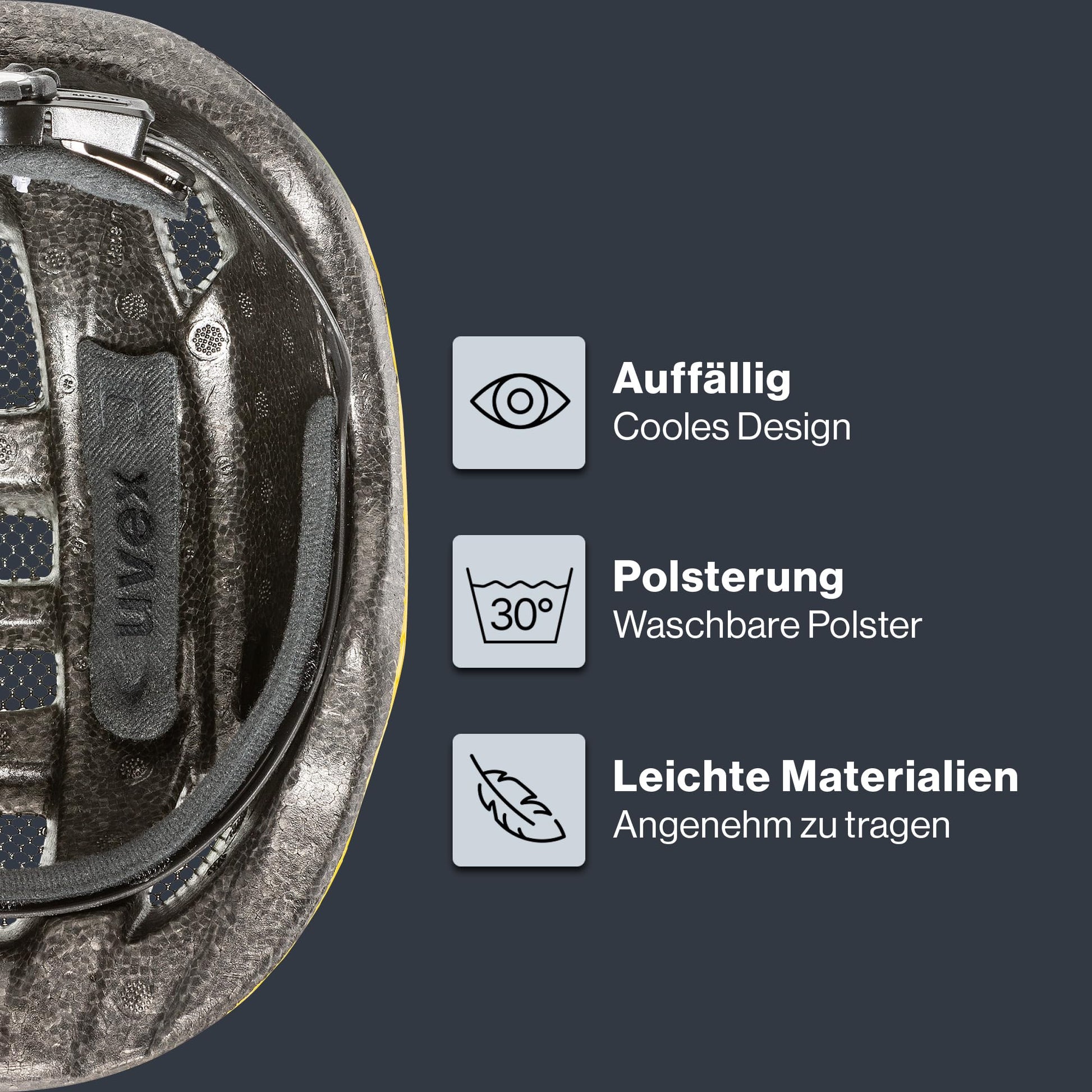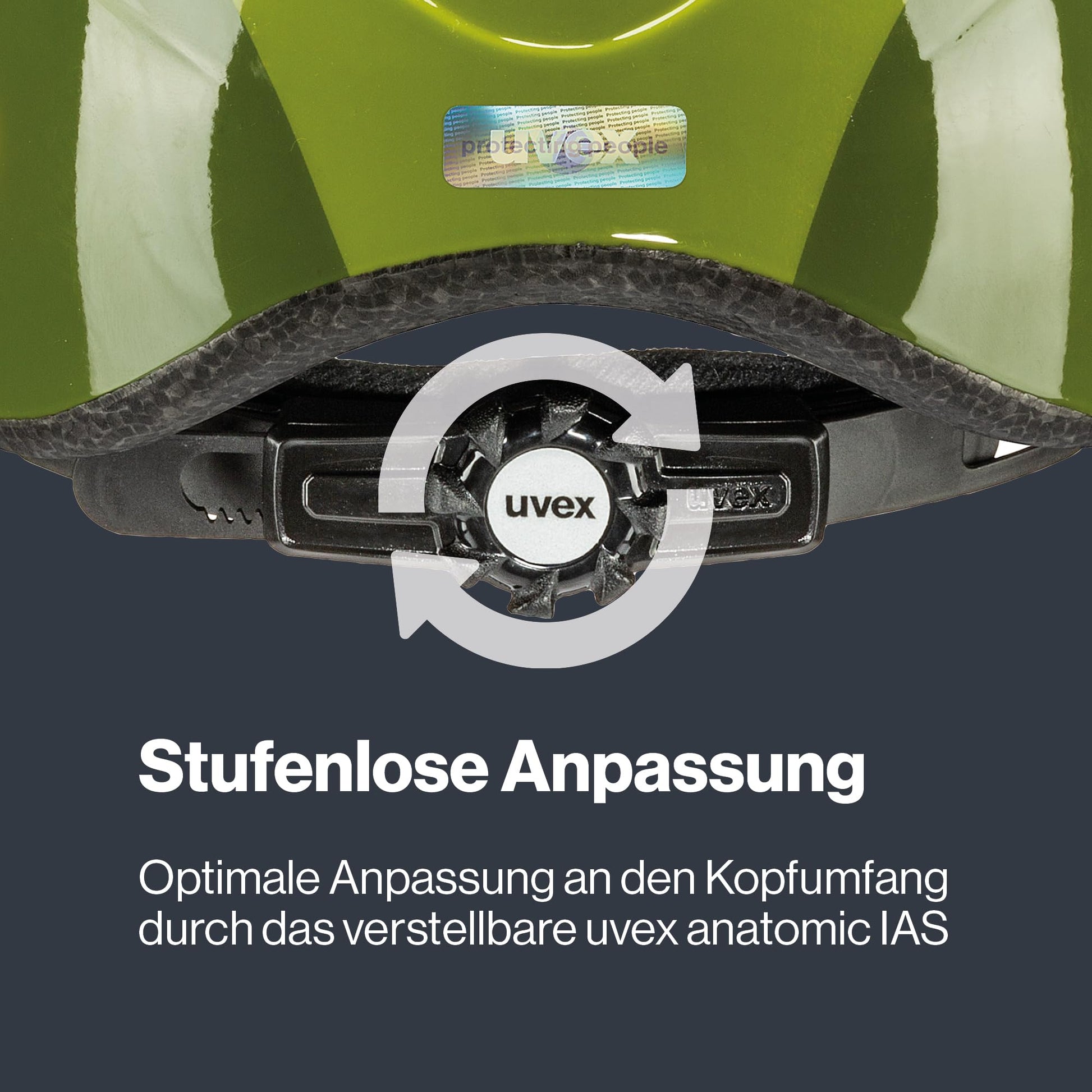 ["Lightweight helmet construction with high impact resistance due to the inseparably bonded shell of EPS inner layer and polycarbonate outer layer","Precise adjustment to the individual head circumference by the adjustable uvex IAS system","The FAS strap can be easily and continuously adjusted to fit the head shape perfectly","Removable, washable helmet pads","Expandable with attachable LED light (optional)"]