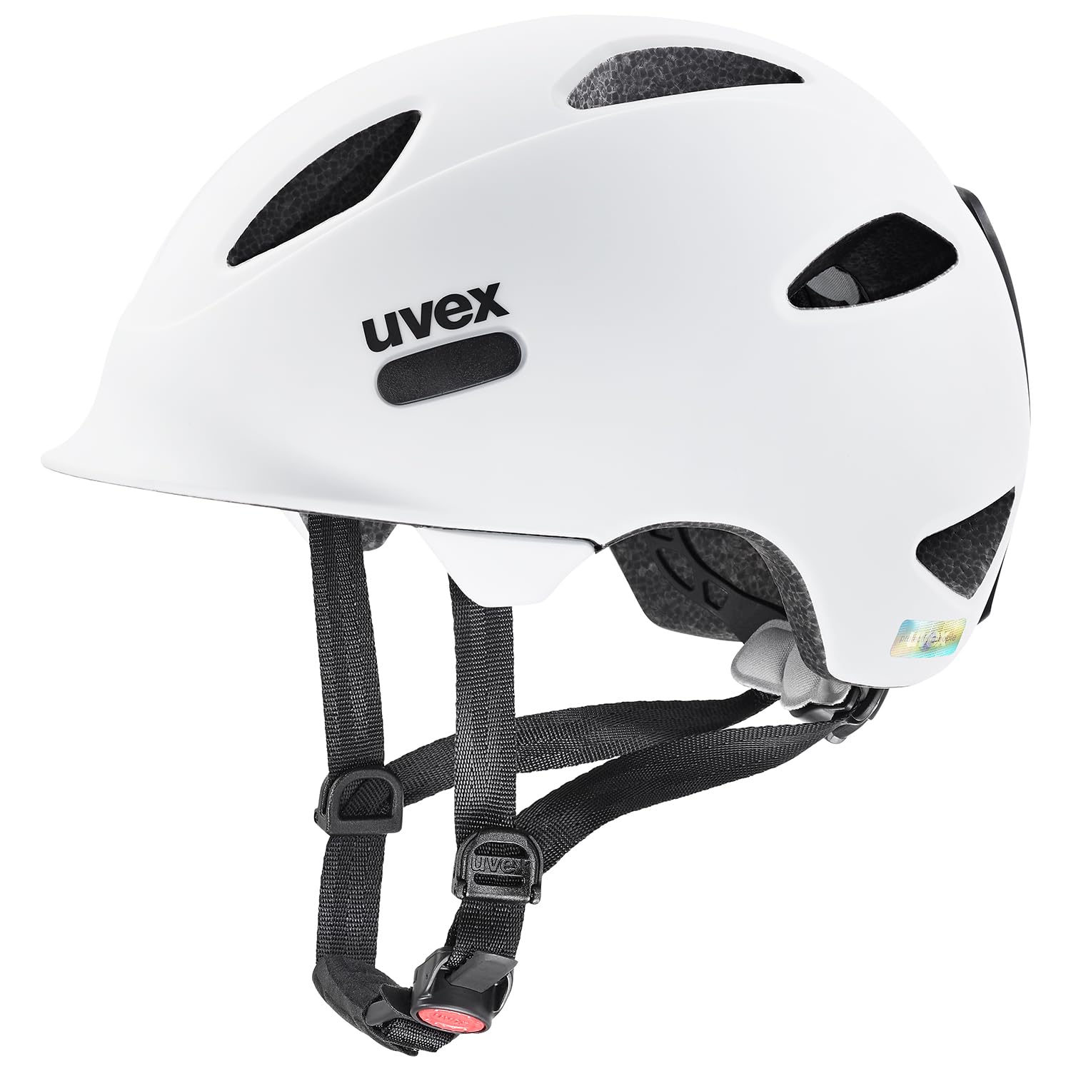 uvex oyo - lightweight bike helmet for kids - custom size adjustment - expandable with LED light - white - black matte - 50-54 cm