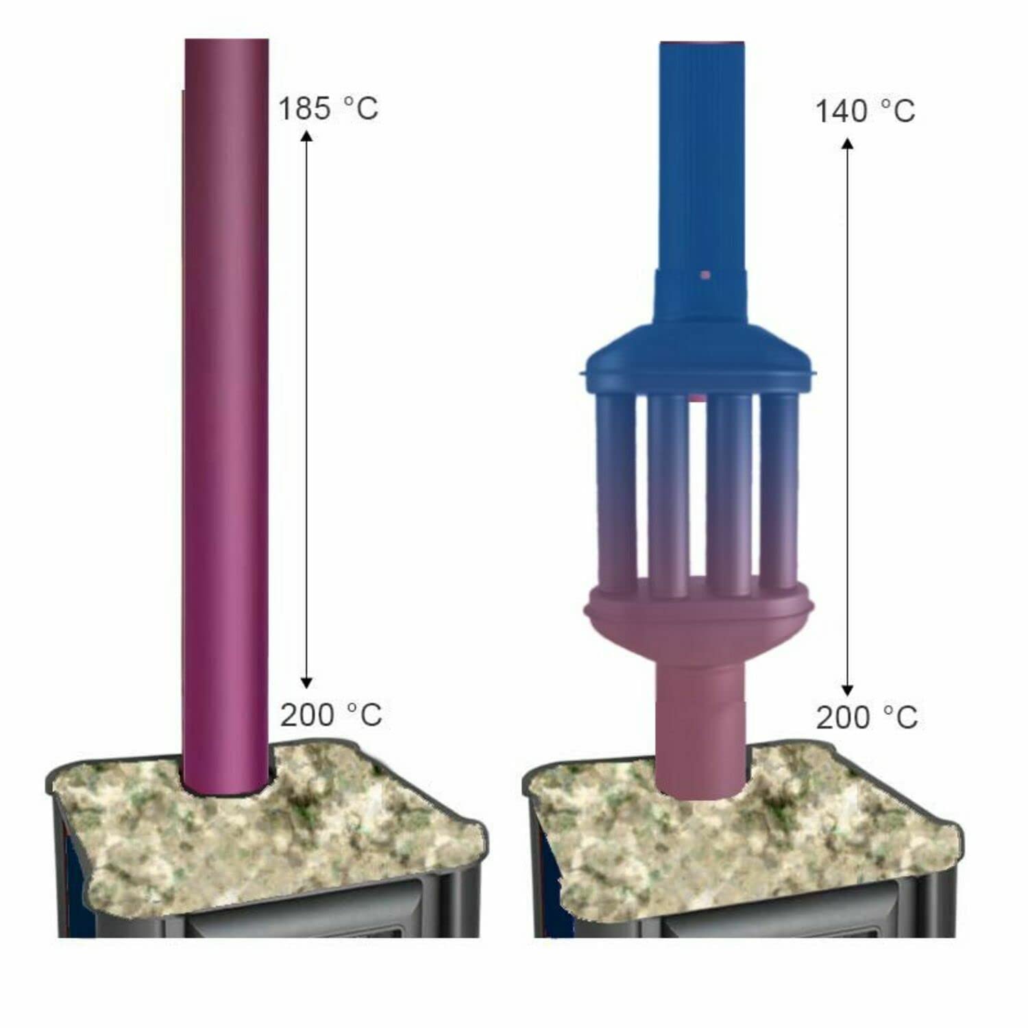 ["Exhaust heat exchanger 120mm / 130mm selectable, total height 55cm","DURABLE WARM AIR EXCHANGER: Valuable exhaust heat from your fireplace is transferred to the room air through the large surface of the 6 channels without significantly affecting the chimney draft","SAVE ENERGY COSTS: Exhaust heat exchanger provides a significantly higher yield of the heating energy used, helping to reduce energy costs and protect the environment","EASY TO USE: Smoke gas cooler is suitable for stoves, fireplaces, wood boilers, and wood gasifiers | Pipe simply inserted between the existing exhaust pipes of the stove","RED-BROWN"]