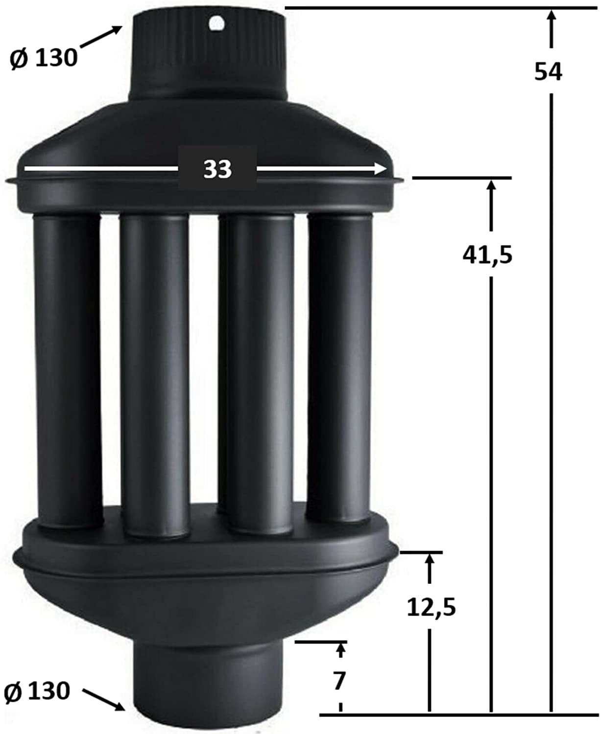["Exhaust heat exchanger 120mm / 130mm selectable, total height 55cm","ROBUST HEAT EXCHANGER: Valuable exhaust heat from your fireplace is released to the room air through the large surface of the 6 channels without significantly affecting the chimney draft","SAVE ENERGY COSTS: Exhaust heat exchanger ensures a significantly higher yield of the heating energy used, helping to reduce energy costs and protect the environment","EASY TO USE: Smoke gas cooler is suitable for stoves, fireplaces, wood boilers, and wood gasifiers | Pipe simply fits between the existing exhaust pipes of the stove","COLOR BLACK - MATTE"]
