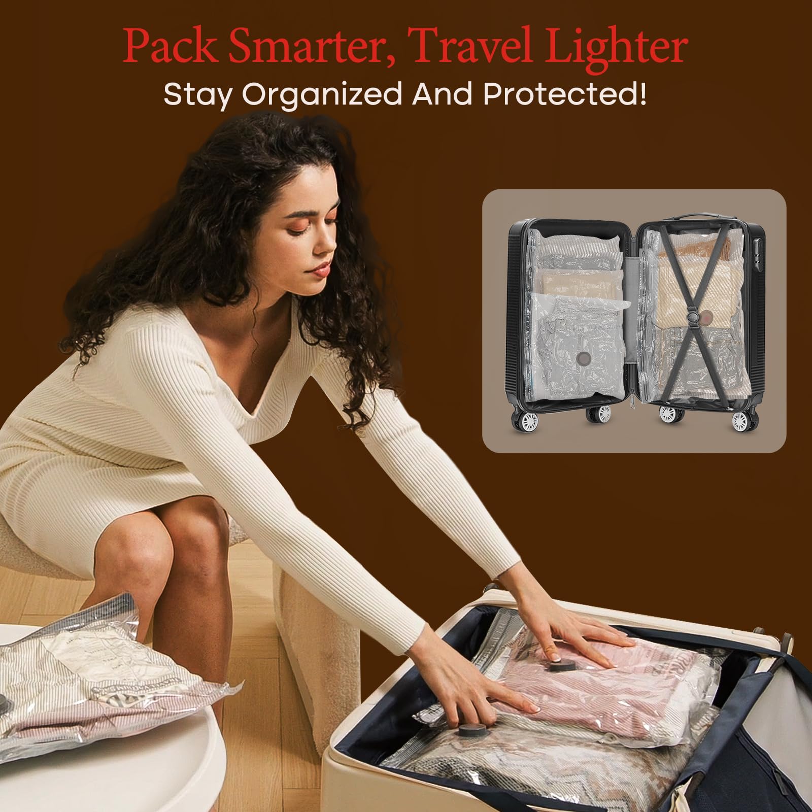 "How do you stay organized? 12 Travel Vacuum Bags in 3 sizes (4*40x50cm, 4*40x60cm, 4*50x60cm). With vacuum bags in different sizes, you can easily organize your wardrobe, keep it clean and tidy, and feel happier.