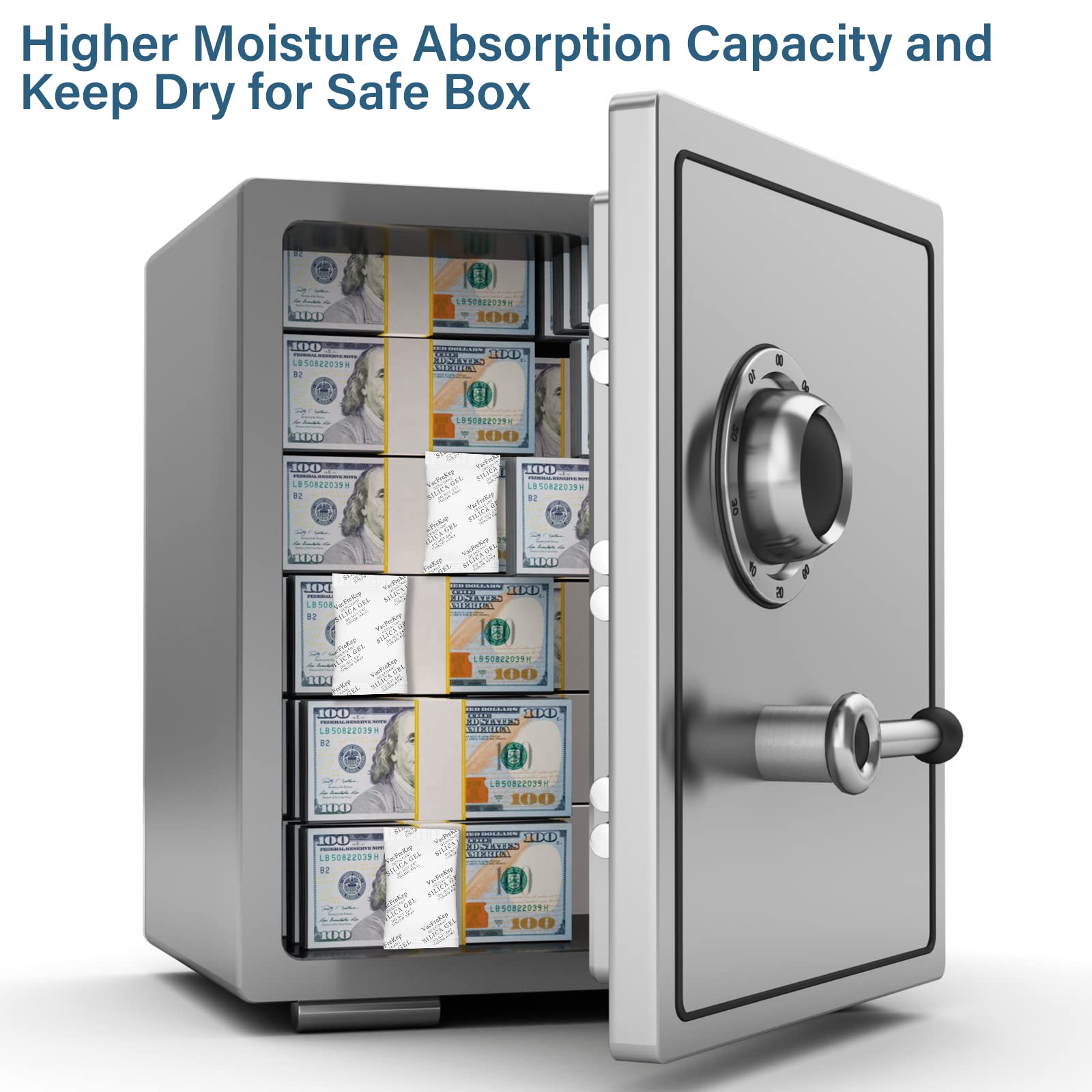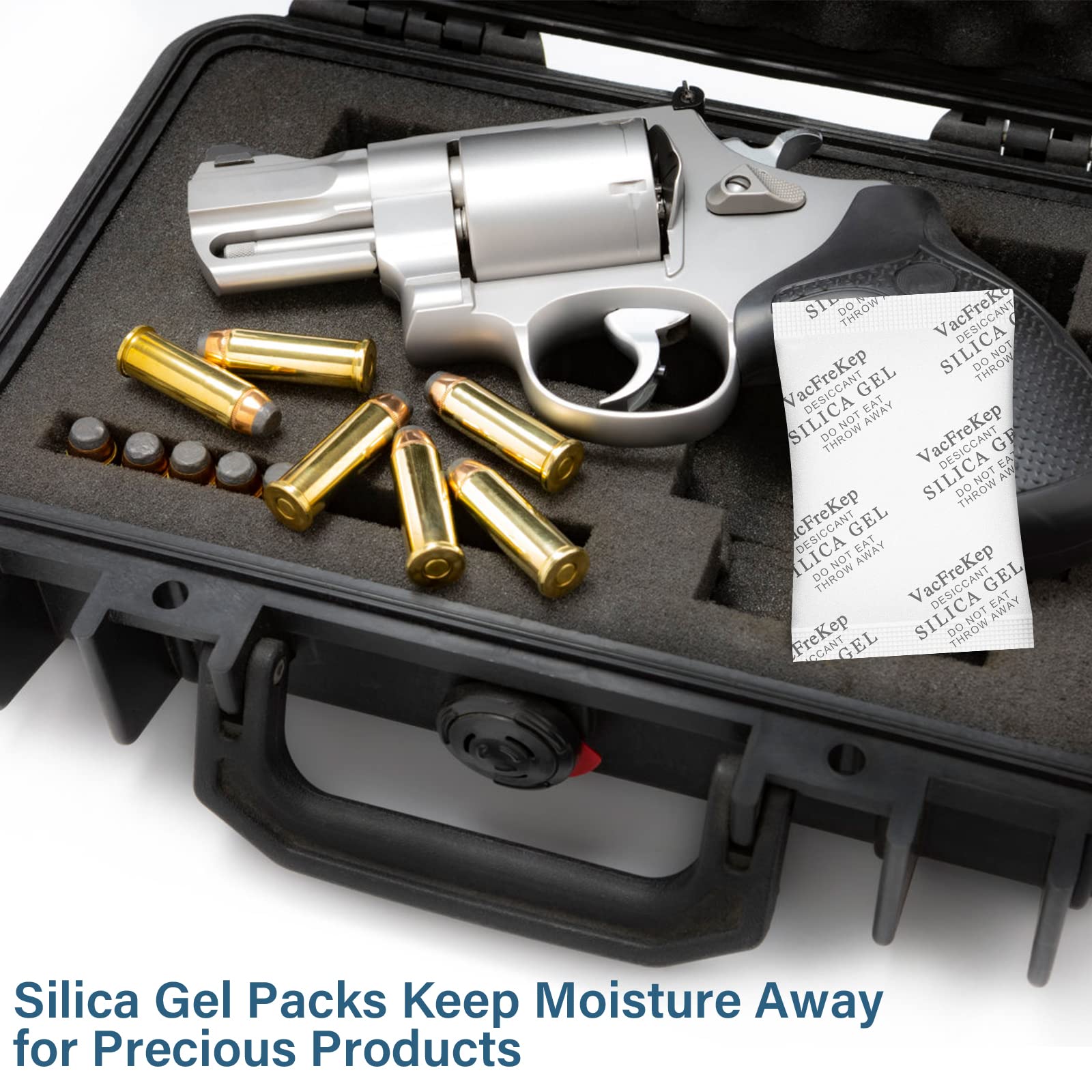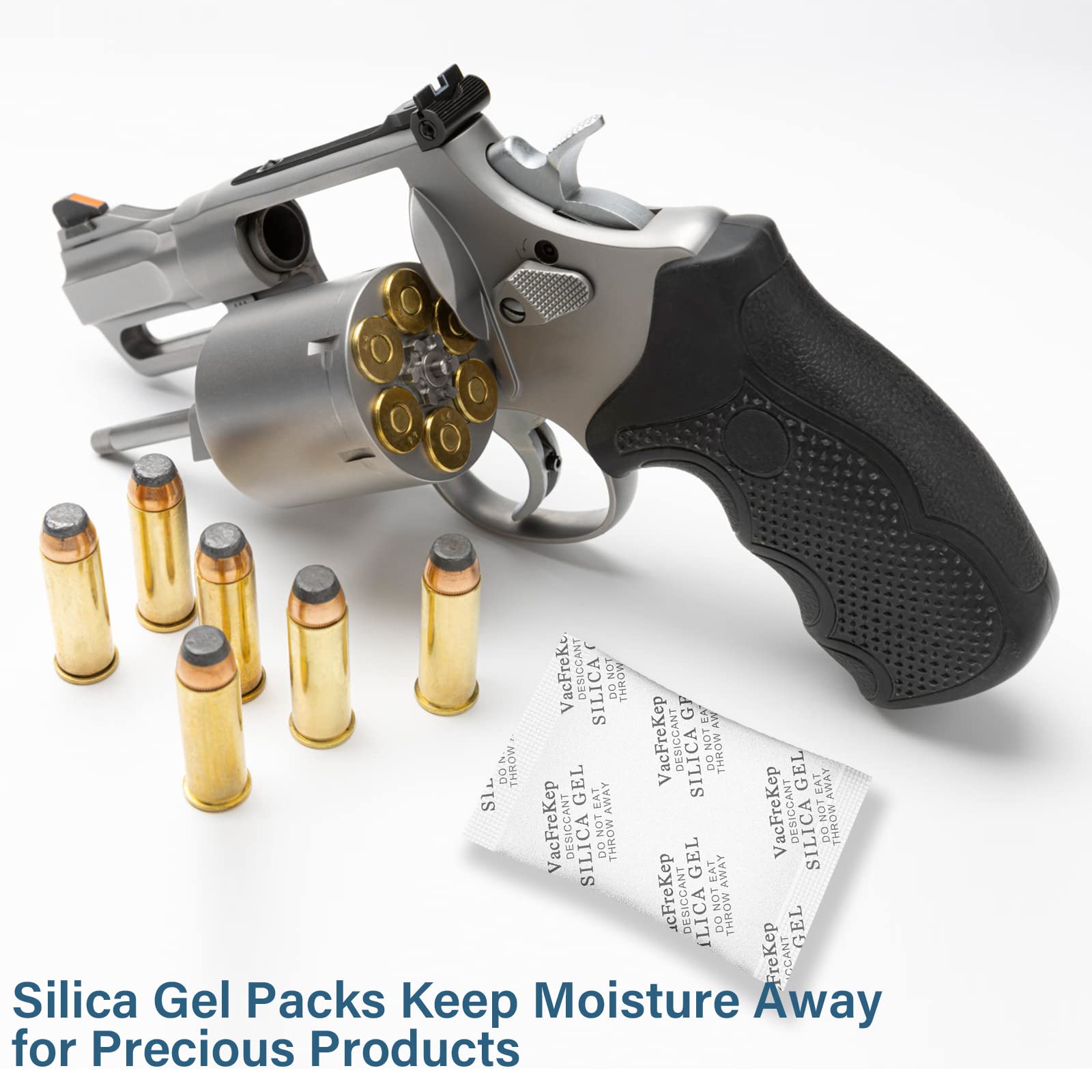"Over 40 years of experience in the silica gel desiccant sachets industry: VacFreKep silica gel packs are known for their higher absorption capacity and many applications for moisture absorption. You will have a great experience with our products","Material: Silica gel desiccant packs contain the absorbent drying beads called silica gel. Silica gel desiccant packs are free of cobalt chloride","Higher absorption capacity: Silica gel desiccants can absorb 40% of its weight in water vapor, silica gel packs provide excellent absorption and remain dry at maximum saturation","Special desiccant paper: Moisture absorber packs are stored in a resealable, high-quality bag for easy storage and use (new redesigned airtight closure and sturdy bag for moisture control)","Benefits: Silica gel desiccant packs are a highly active absorbent material widely used in every corner and in everyday life products such as ammo, jewelry, documents, camera, clothing, cosmetics, books, electronics, shoes, and many other valuables"